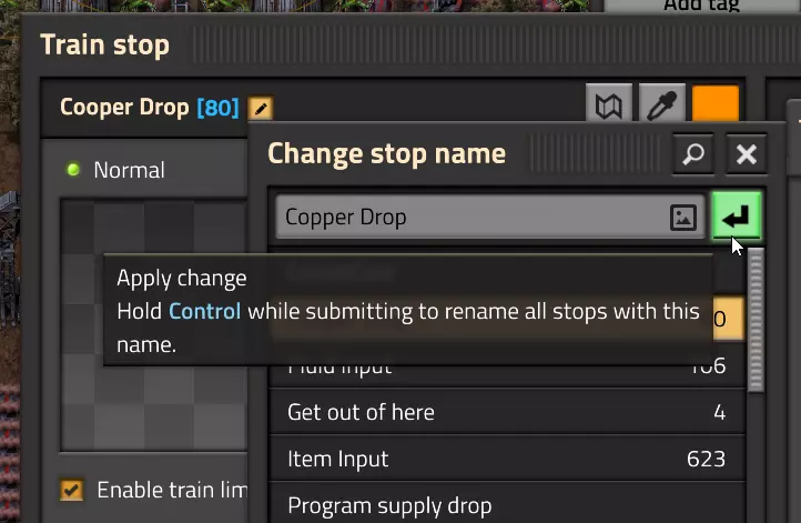 要更改所请求物品的品质。重命名火车站时按住【Ctrl】键。