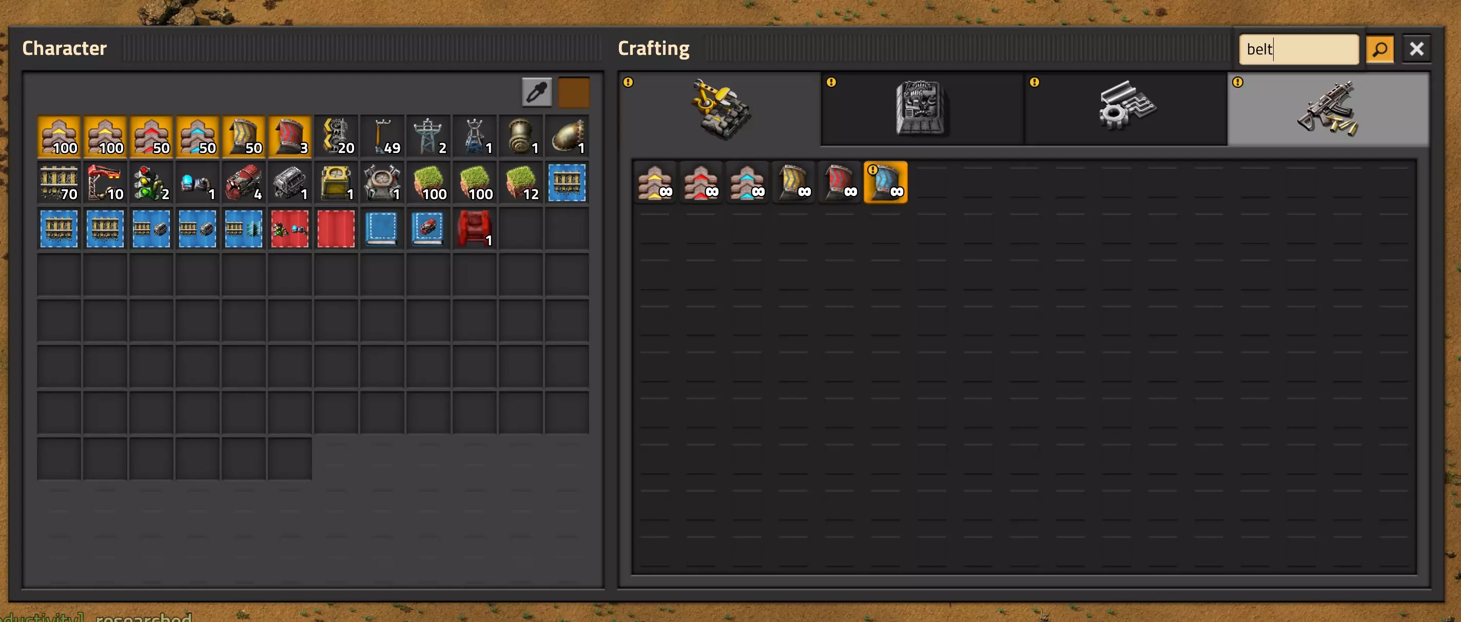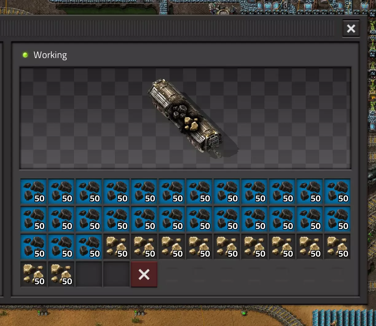 在货运列车或玩家物品栏槽位上,可筛选列车货物或玩家物品栏槽位。其工作方式与物流箱的请求槽位类似,但需使用【中键】而非左键。你可以通过【Shift+右键】复制筛选条件,再用【Shift+左键】粘贴,也可将其保存到蓝图中。