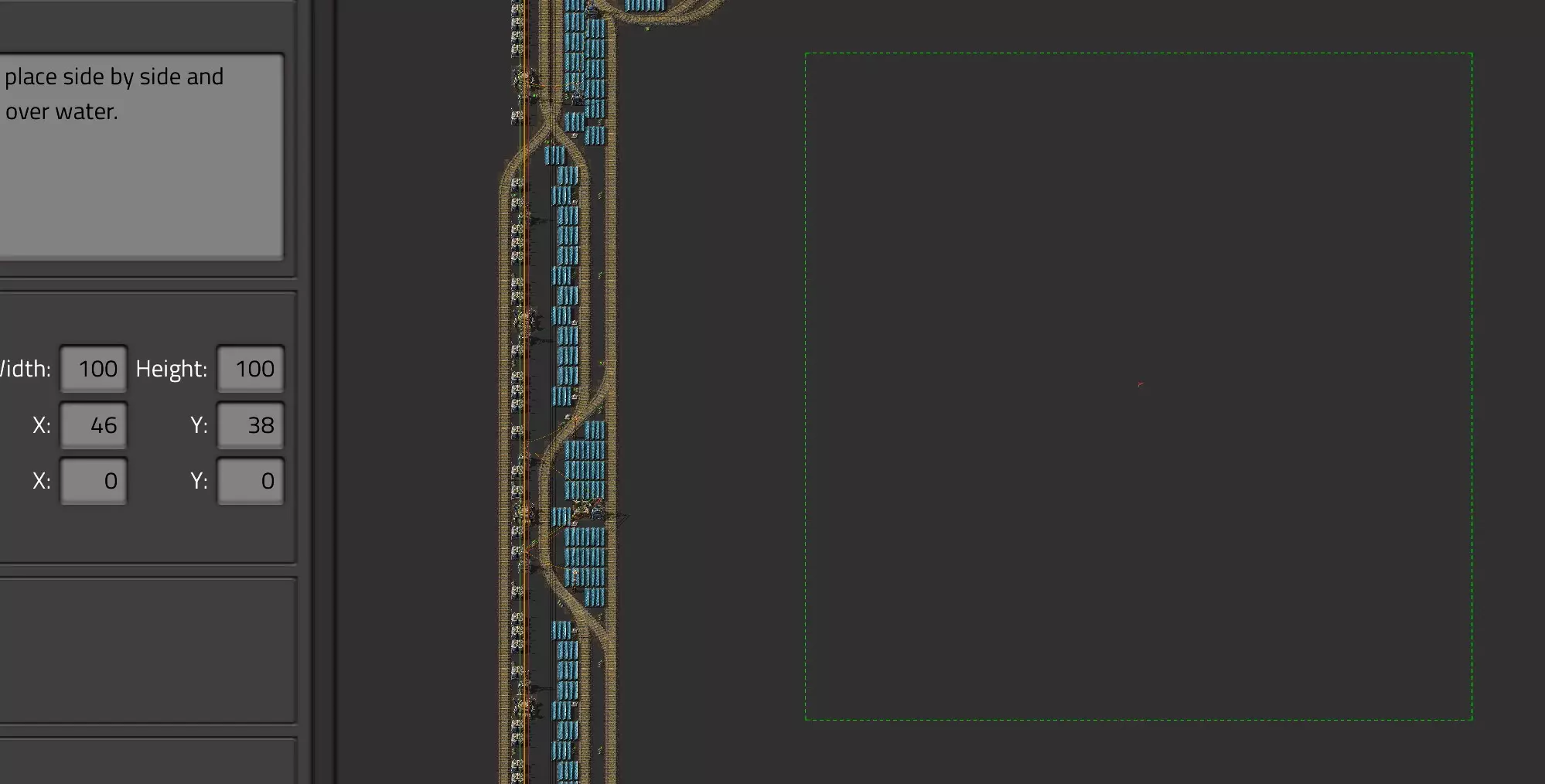 在角色物流菜单中(点击角色打开菜单),将蓝图拖放到【添加区域】按钮上,即可自动订购该蓝图所需的所有零件。 为提高火车吞吐量,不要使用过多的火车信号。 使用升级或降级规划器多次框选实体,可在机器人替换它们之前对这些实体进行多次升级或降级。例如,若想从速度模块1升级到速度模块3,可框选目标两次,进行两次升级。 在火车界面中,将鼠标悬停在地图上的轨道上时,按住【Ctrl】键。