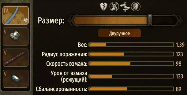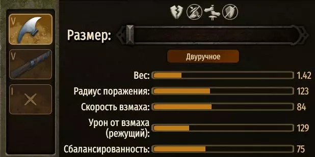 它比普通的长柄斧稍慢且平衡性较差,但劈砍力更强、长度更长,这一点非常重要。武器的速度可以通过武器强化等级来弥补。此外,当锻造技能等级较高时,你可以打造出带有【传奇】级修饰词的武器,从而增强其属性。 配方获取方式:复制配方后,进入锻造界面,按下CTRL+V(或SHIFT+INS),配方将自动应用,无需手动点击操作。当然,配方中使用的组件必须由你预先研究。 <CraftedItem id="E02DBC149939A7562AFDD960B7E29ACA" name="双手剑(已制作)" crafting_template="TwoHandedSword"> <Pieces> <Piece id="battania_blade_6" Type="刀刃" scale_factor="105"/> <Piece id="battania_guard_1" Type="护手" scale_factor="95"/> <Piece id="aserai_grip_19" Type="握柄" scale_factor="90"/> <Piece id="battania_pommel_8" Type="剑柄尾端" scale_factor="90"/> </Pieces> <!-- 长度:123 重量:1.36 --> </CraftedItem> 制作。双手斧。双手斧优于刽子手重斧 难度=169 组成部分 名称 尺寸 刀刃 III 宽刃北方大斧 ~33% 手柄 IV 强化型山毛榉斧柄 100% 连接部 X 0%