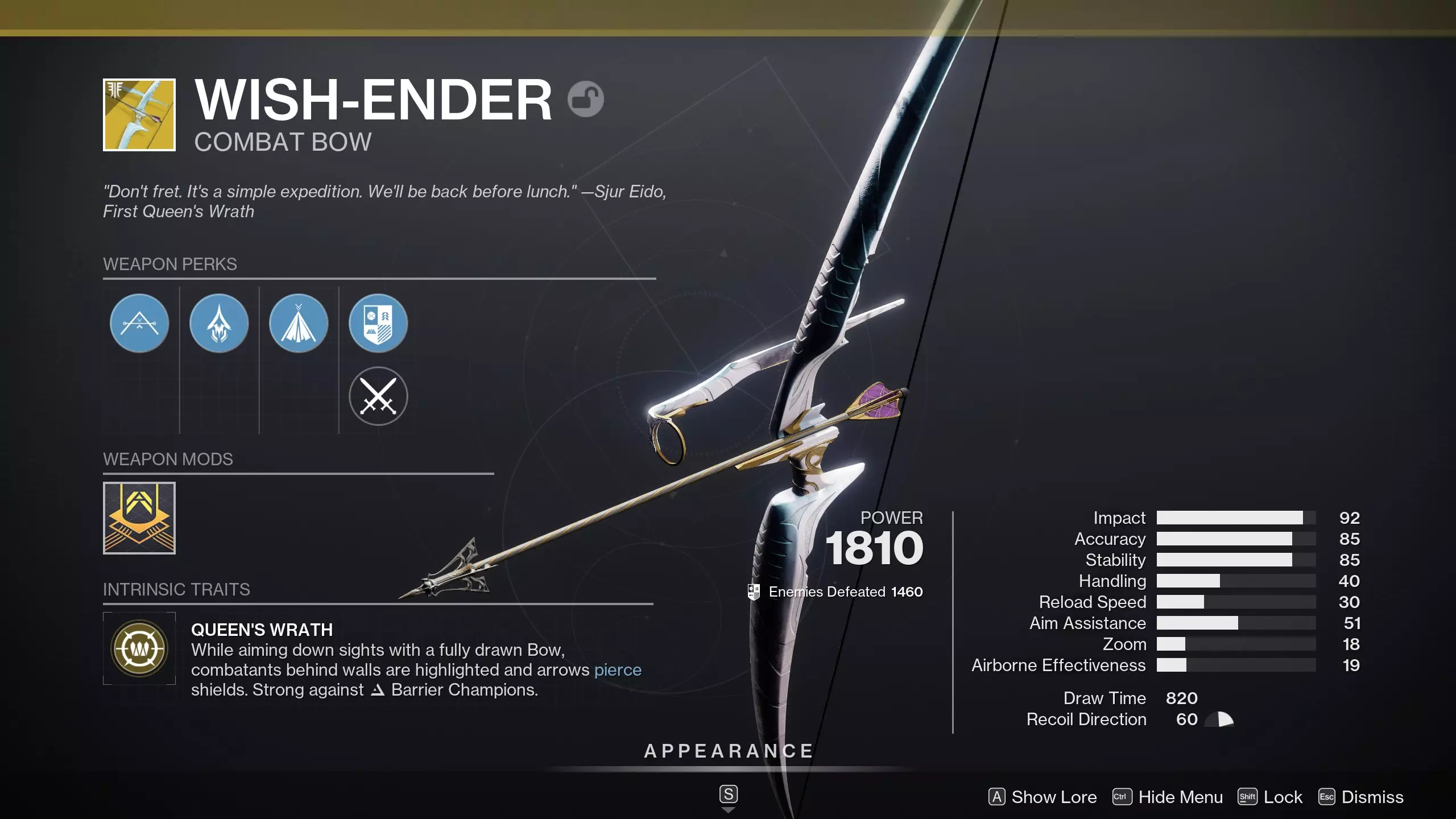 收集15件遗落之族异域武器或护甲。 隐藏成就 收集15件遗落之族异域武器或护甲即可解锁该成就。 此成就描述已过时。若要获取该成就,你需要通过佩特拉在梦城交给你的猎人的纪念任务线获取异域武器“命运编织者”。该任务线会带你进入破碎王座地牢,但你无需完全通关,只需击败三个小Boss。击败小Boss后,将纪念品交给最终Boss战外部持有“命运编织者”的雕像,即可解锁成就。 Seal the Deal