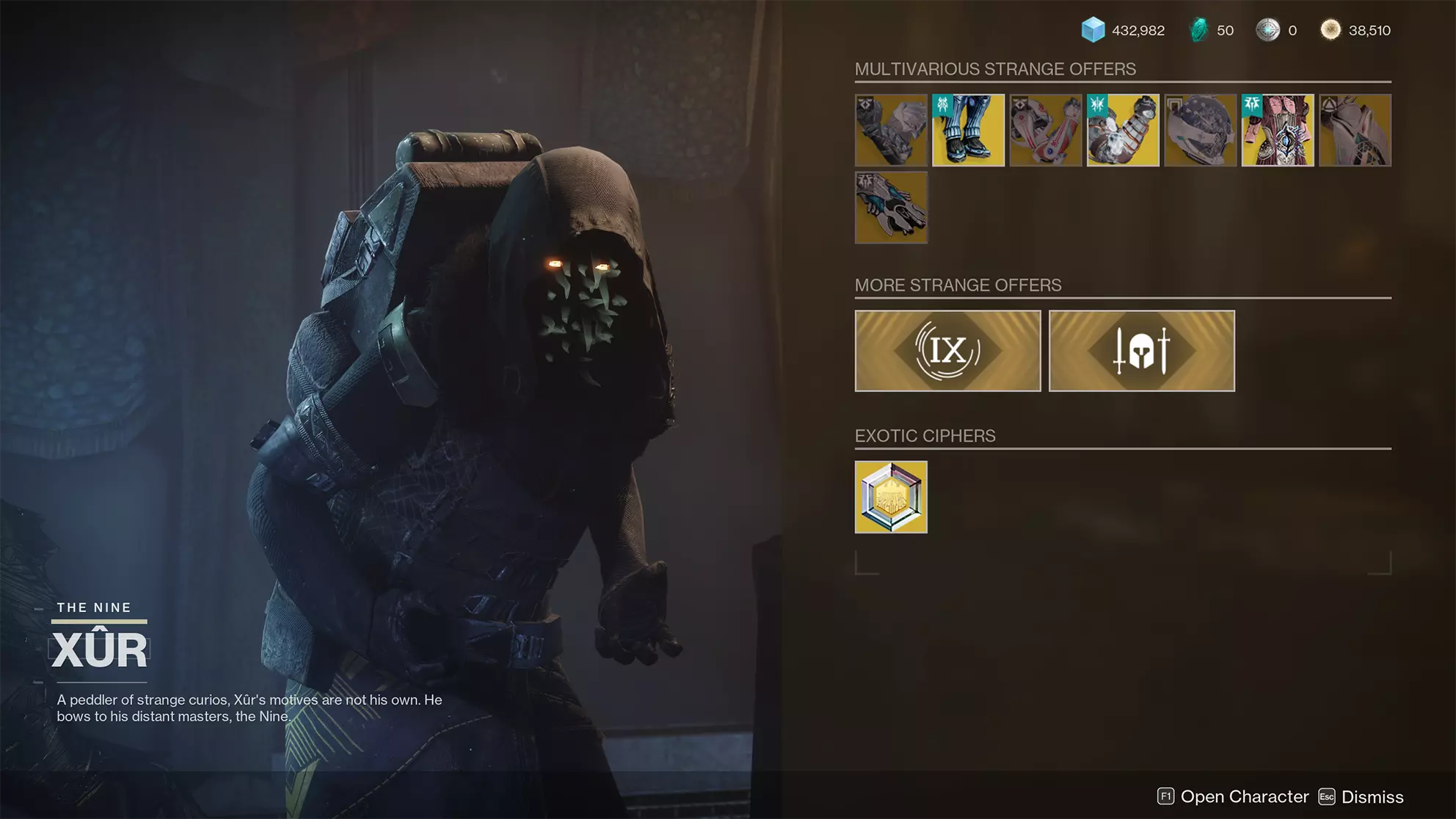 在星系某处遇到九人特工。 九人特工神秘商人是一位售卖极为稀有物品的商贩。他只在每周五出现,直至周二的周常重置。经过近十年的四处移动后,他终于在高塔集市的拉面店旁的一个小角落里开设了店铺。现在他也会显示在地图上。与神秘商人对话,即可解锁成就。