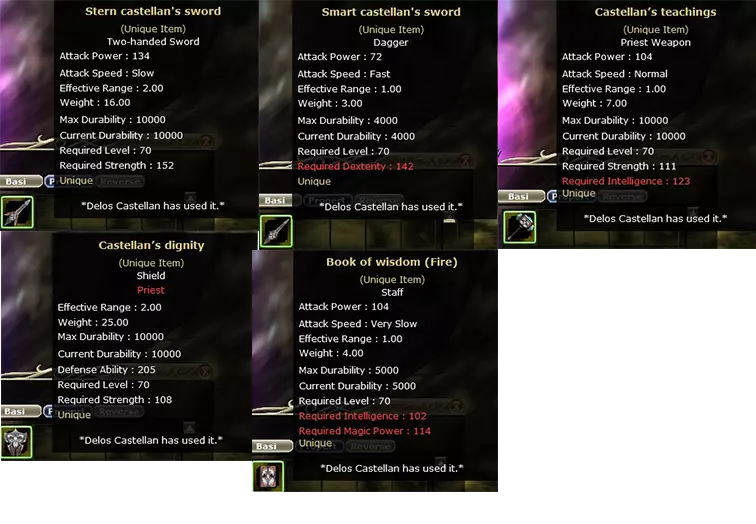 城主武器 你可以获得多种武器。 双手剑 - 严厉城主之剑 匕首 - 聪慧城主之剑 牧师武器 - 城主的教诲 盾牌 - 城主的尊严 法杖 - 智慧之书(火焰/空气/吸引力)【注:空气=冰霜,吸引力=闪电】