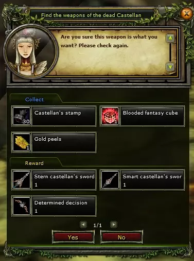 如何获取所需材料? 黄金皮——血红色区域的狼蛛 血之幻想立方体——血红色区域的克劳泽 城主印章——城主幽灵 【掉落率并非100%】 收集完所有所需材料后,你可以与位于黑龙房间的【教皇】斯卡迪对话,并选择想要的武器。
