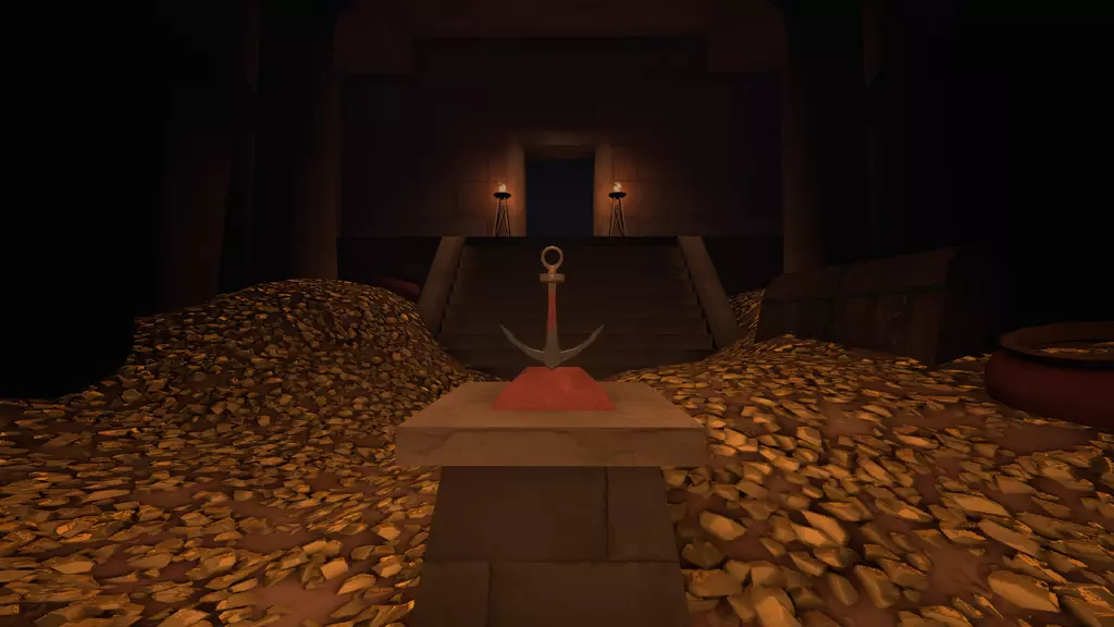 地图的几何结构中隐藏着五个安卡。当玩家靠近其中一个时,它会发出黄色光芒。一旦五个安卡同时被激活,埋藏宝藏的入口就会显现。架子上的石像头部会通过发光的眼睛来显示服务器的进度。例如: