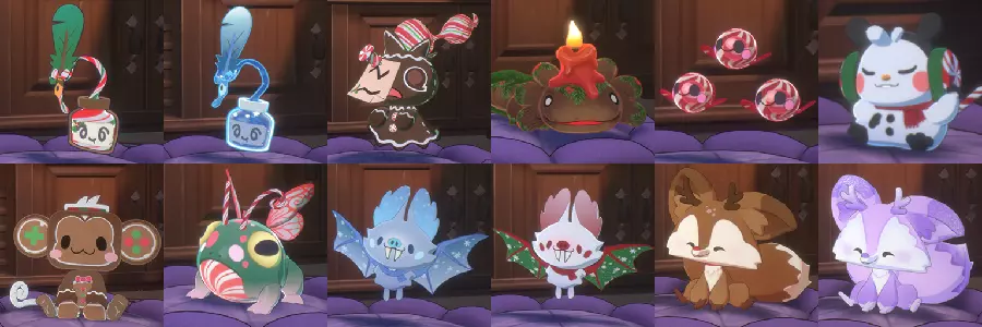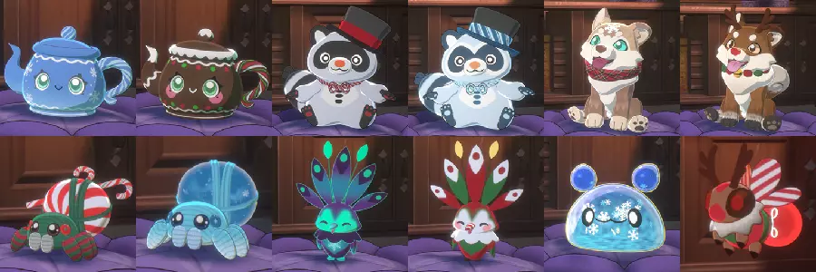 引用自Prof. Avalanche(2025年3月/游戏版本1.8.0):【温馨厨房】DLC新增12个伙伴精灵:其中3个是全新精灵,另外9个是基础游戏中现有精灵的变体。它们不完全是皮肤,更像是近亲。 精灵颜色选择 2024年9月版本