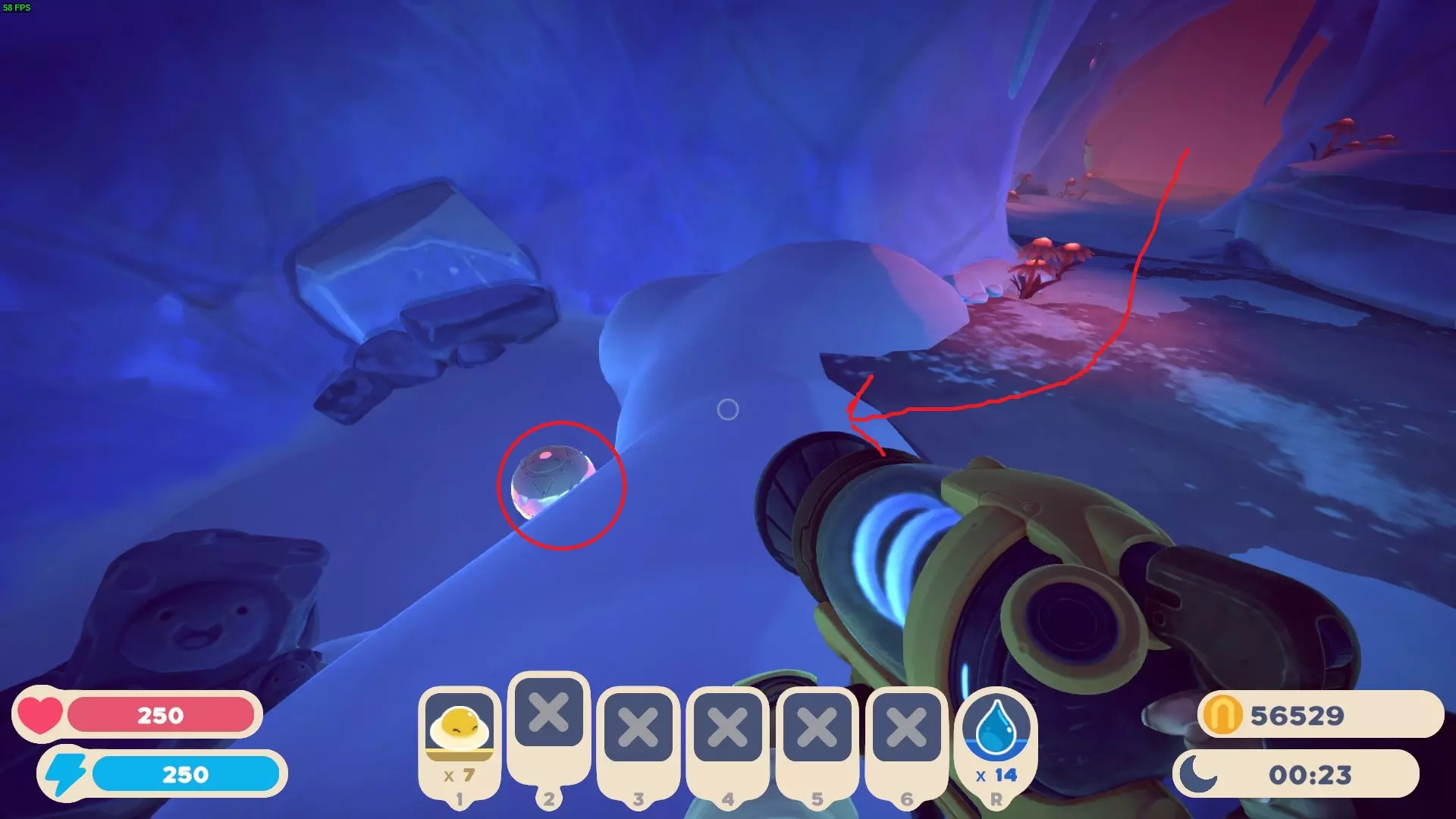 5. 从我们进入洞穴的那个入口离开这个洞穴,前方的冰面上会有第5个胶囊。