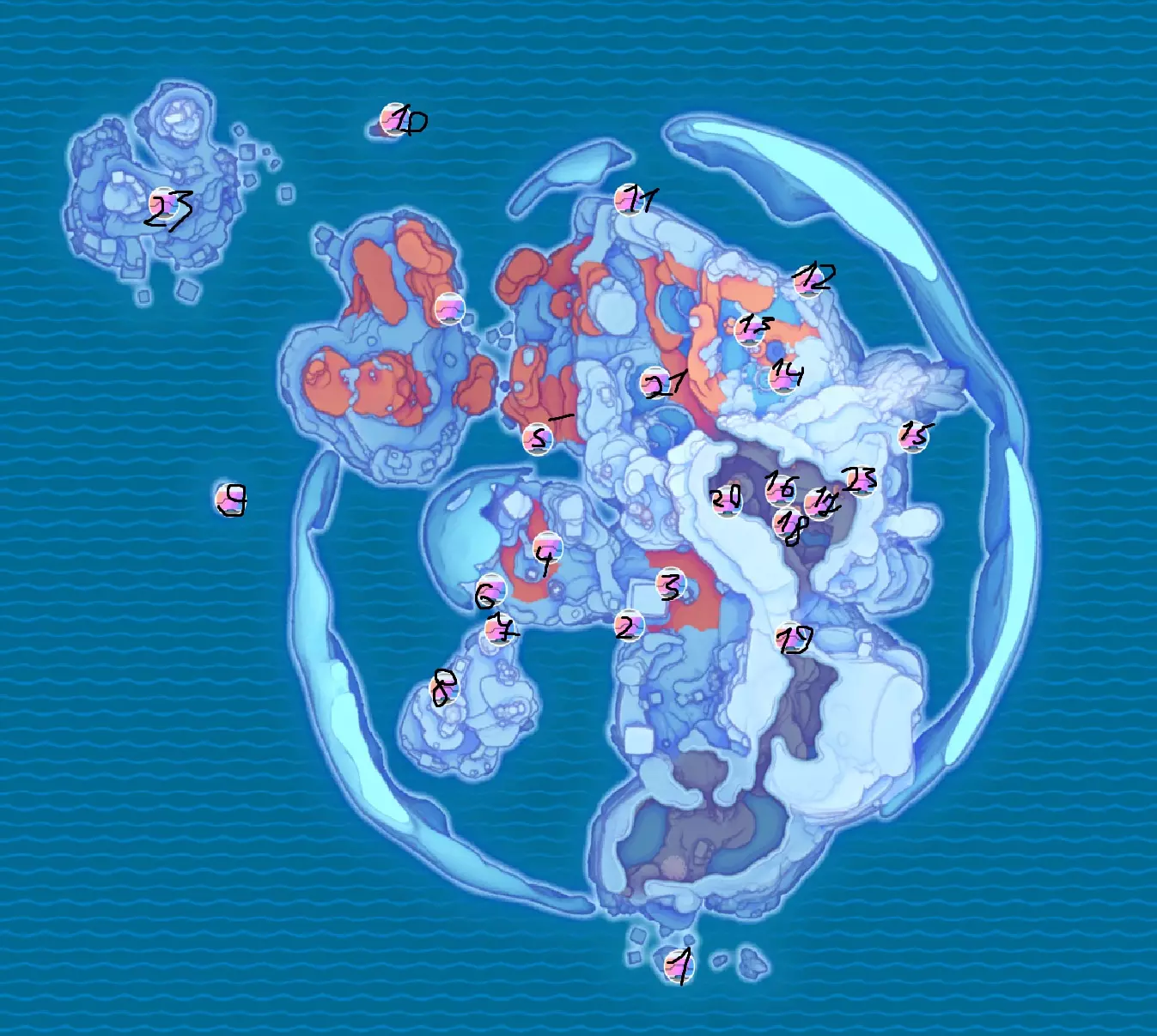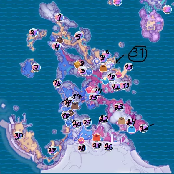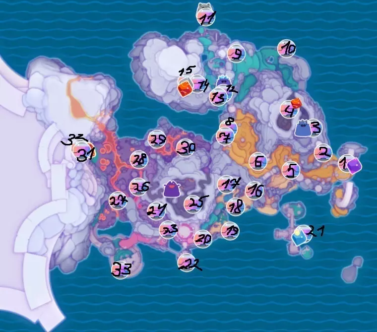 在本指南中,我将展示并说明《史莱姆牧场2》中所有宝藏箱的位置。制作所有截图和本指南本身花费了我大约4天时间,我还需要准备学业。如果有问题或想对某些内容进行修正,欢迎在评论区留言。彩虹田野地图