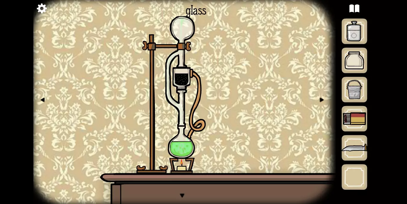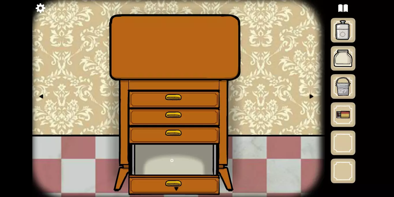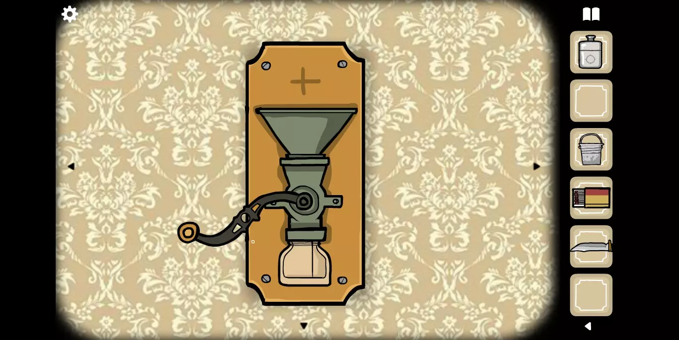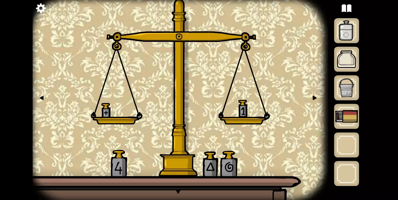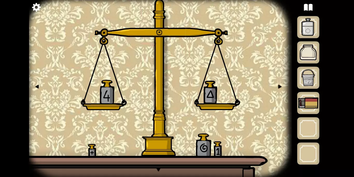 打开研磨机下方的柜子,最下面的抽屉里有火柴。旋转进入下一张画面,在天平处可利用平衡原理和加减法来获取柜子的密码。