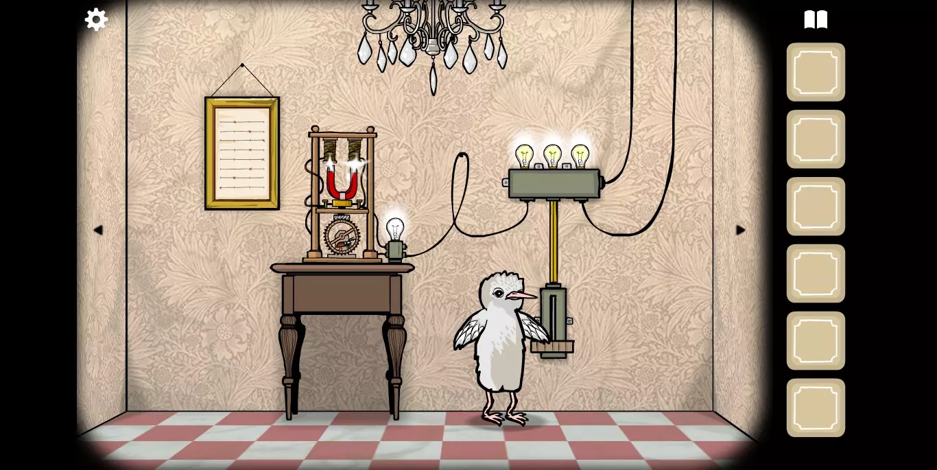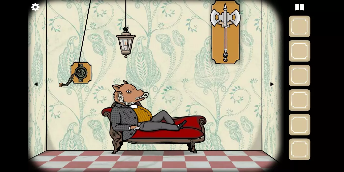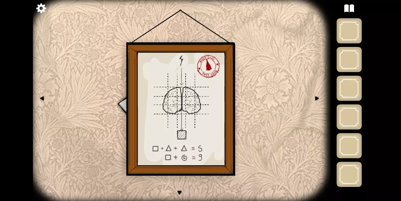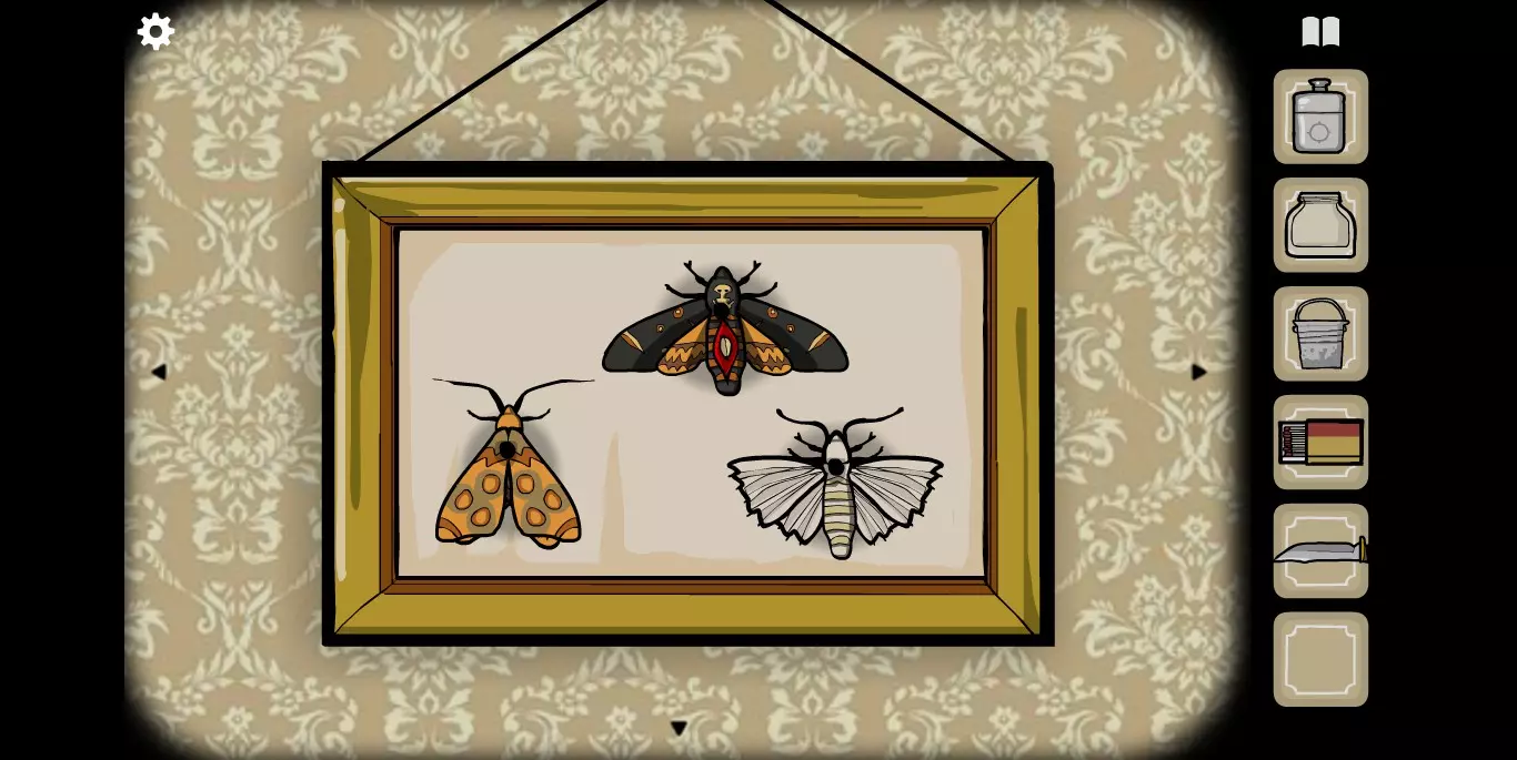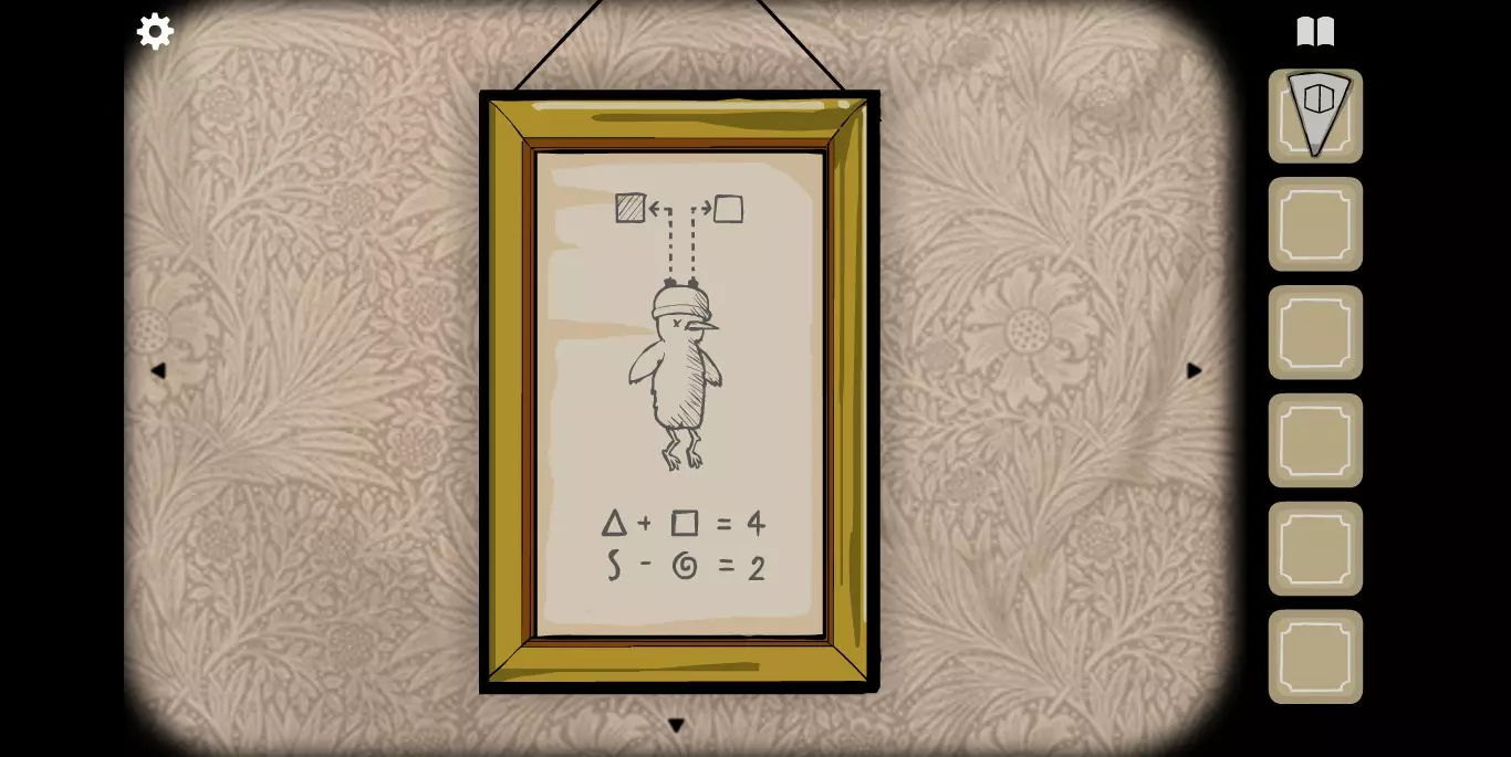 右手边的墙上可以看到一张纸,虽然字迹有些模糊,但相关提示的图标还是很清楚的。接下来,右手边的墙上有一只秃头鹿,点击之后它会长出犄角。