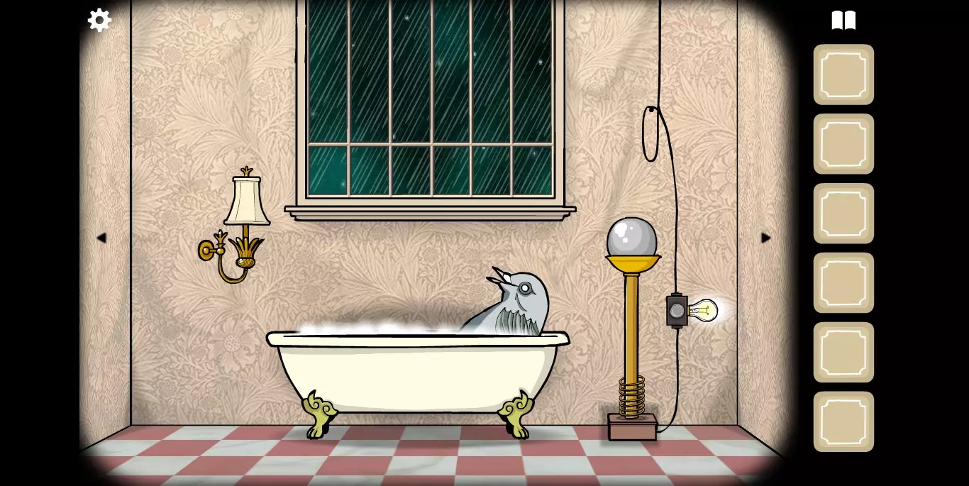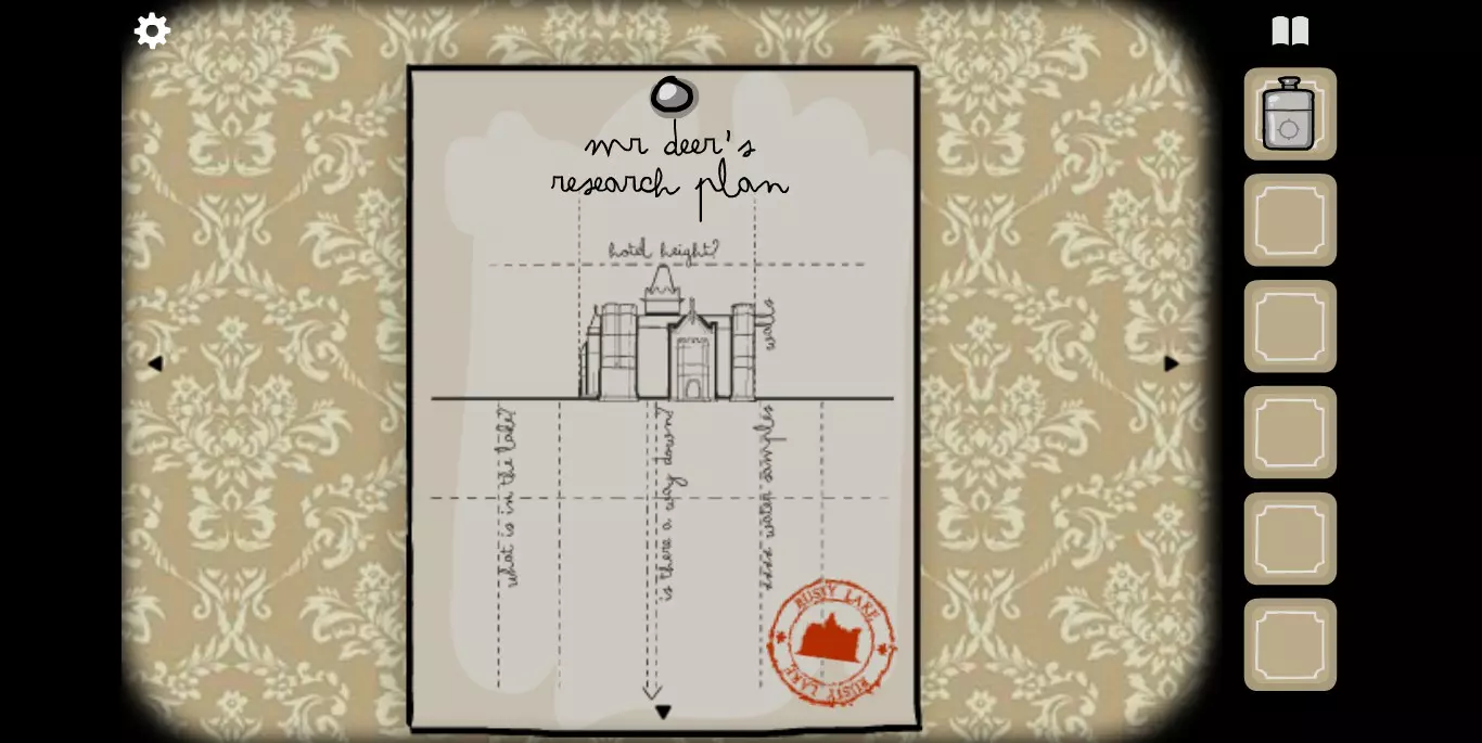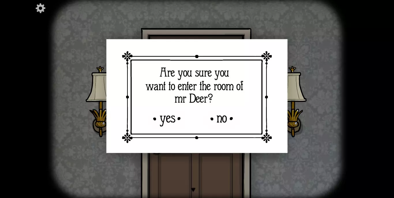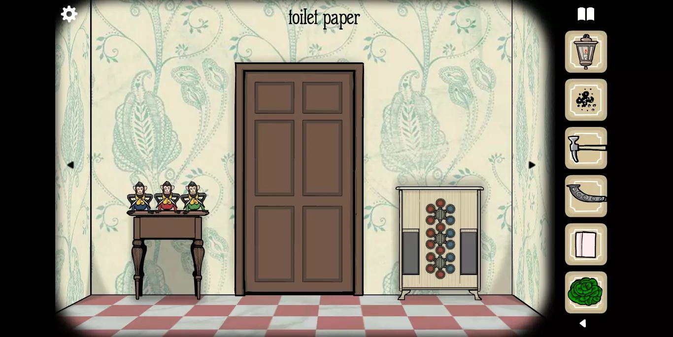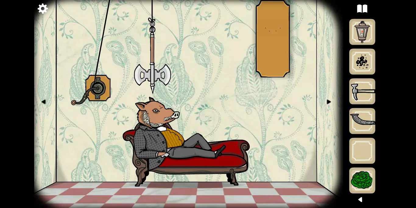 右手边的墙上可以看到一张纸,虽然字迹有些模糊,但相关提示的图标还是很清楚的。接下来,右手边的墙上有一只秃头鹿,点击之后它会长出犄角。