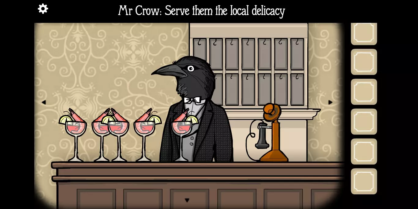 点击大厅中的皇冠先生会得到提示,给客人提供鸡尾酒。拿起鸡尾酒并送到客人手中,以我最喜欢的猪先生为例。