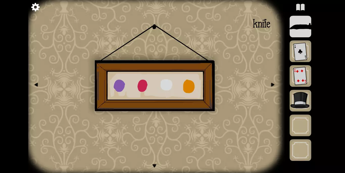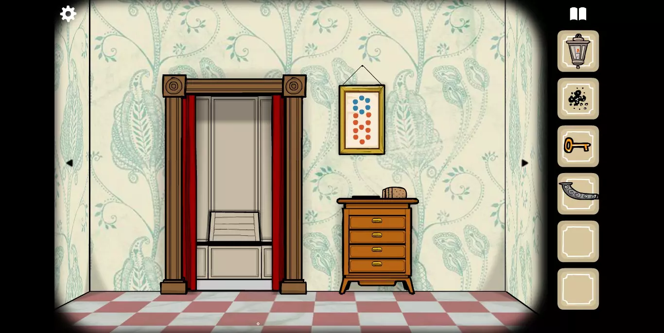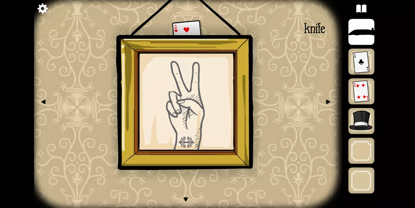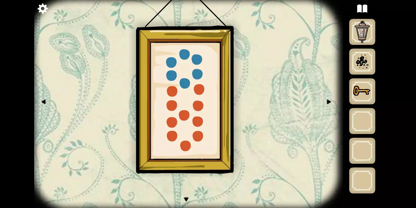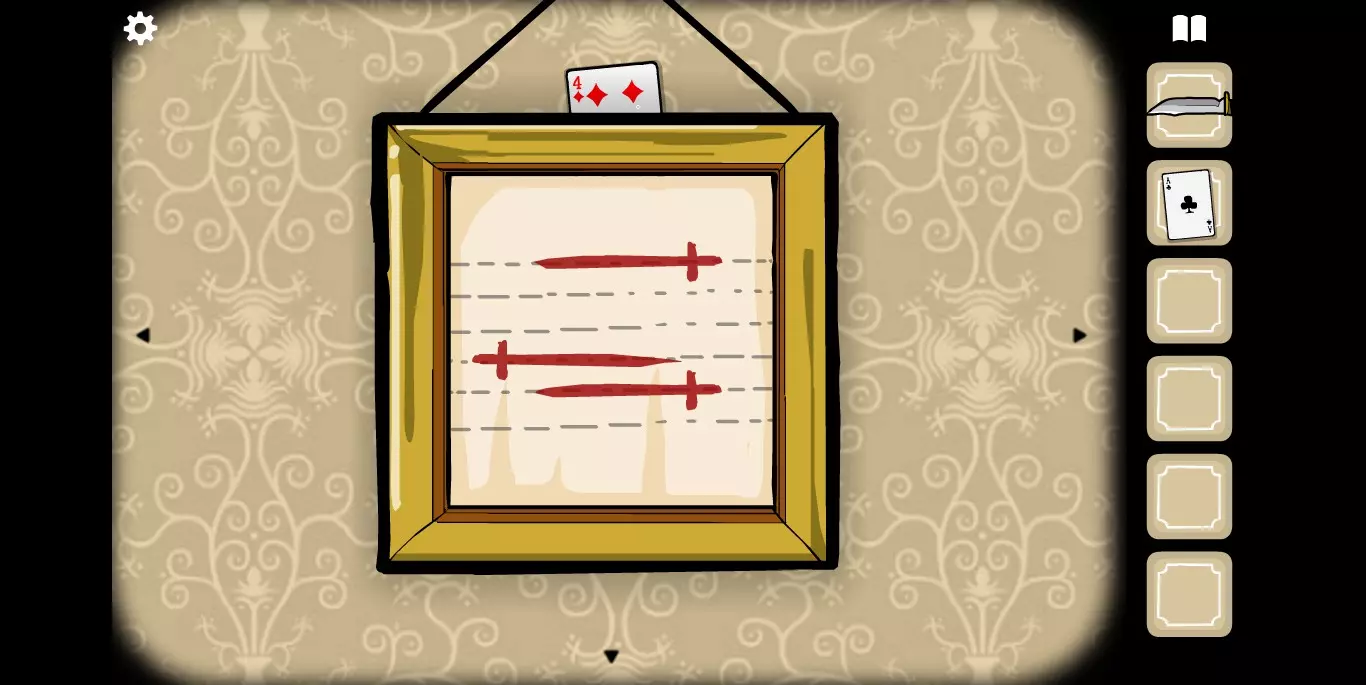 在这里拿到另一张纸牌,并且注意相框里的花纹提示。转换到下一张场景。