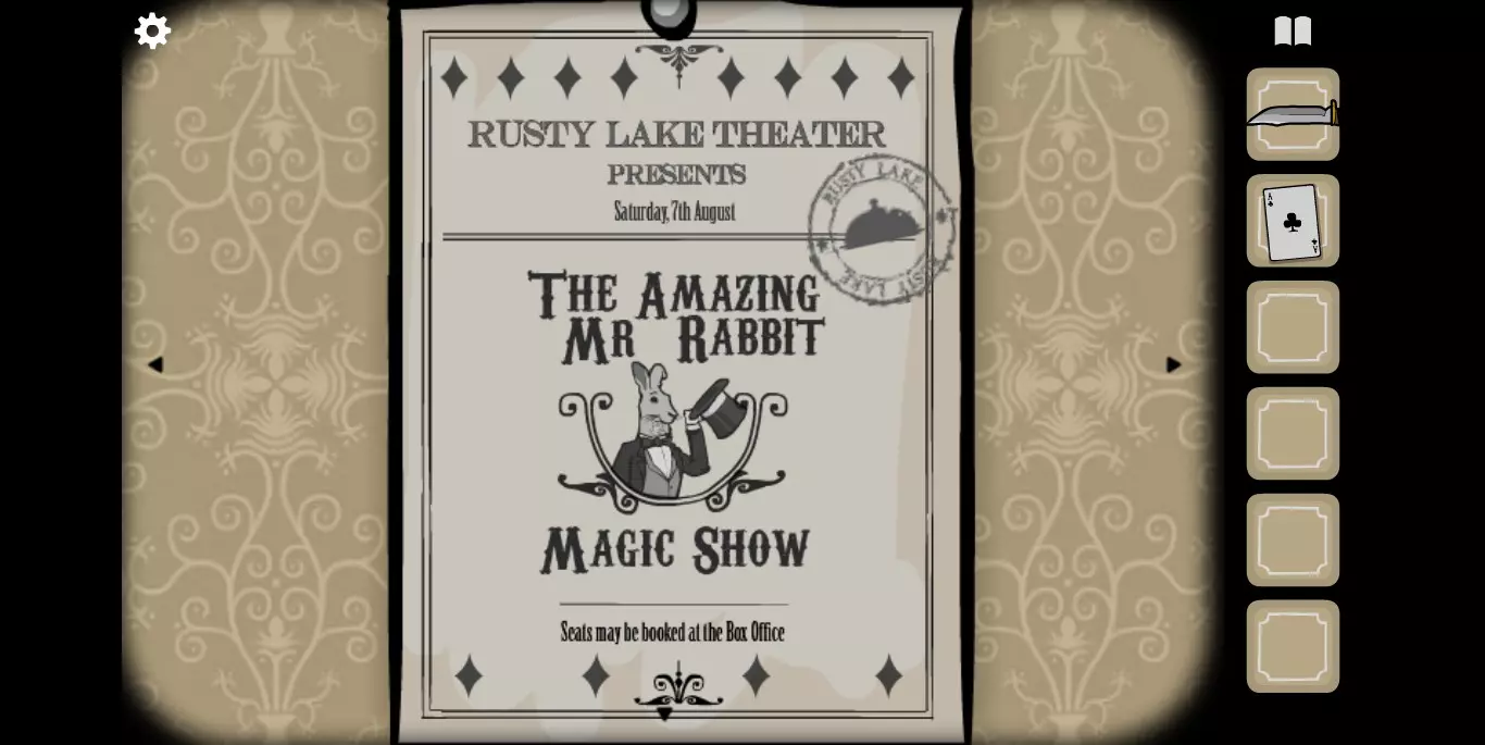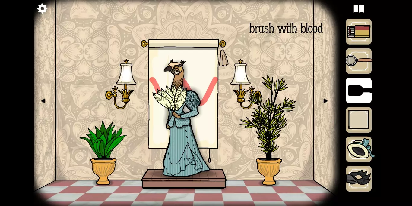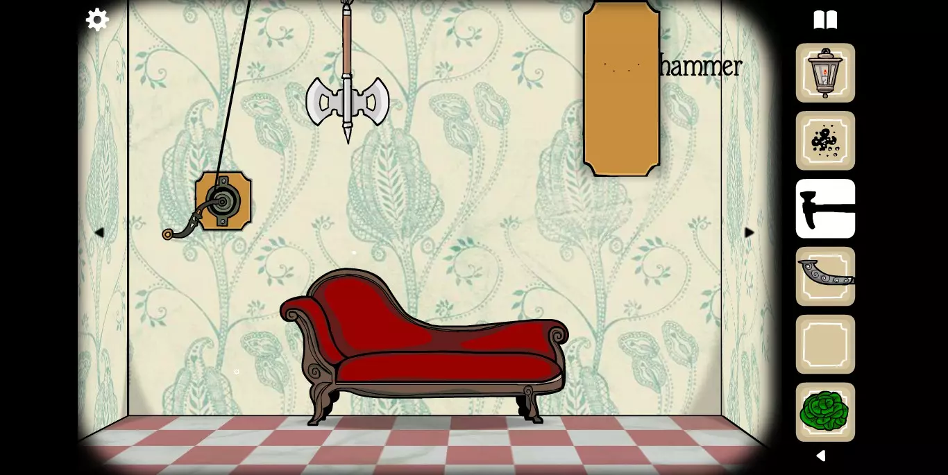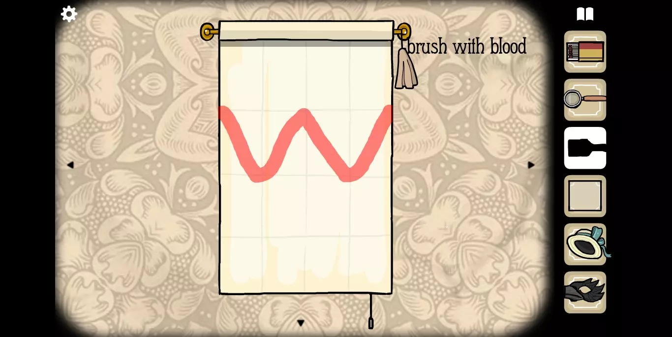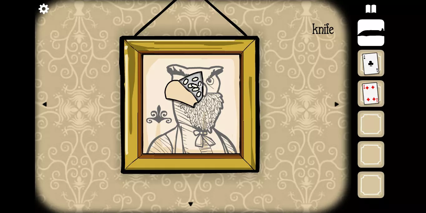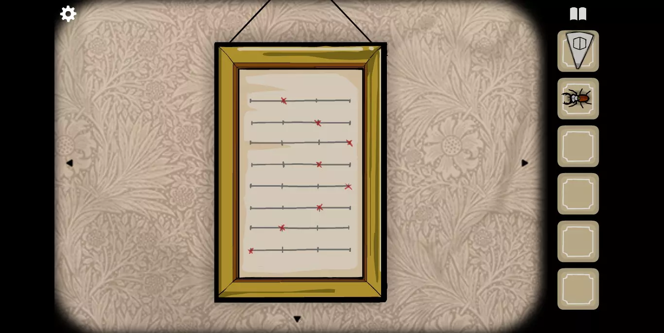 在这里拿到另一张纸牌,并且注意相框里的花纹提示。转换到下一张场景。