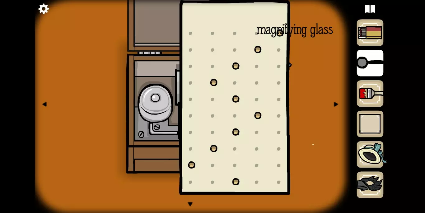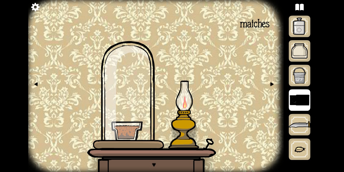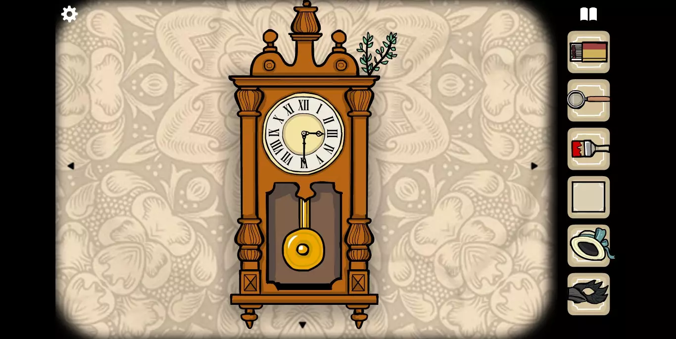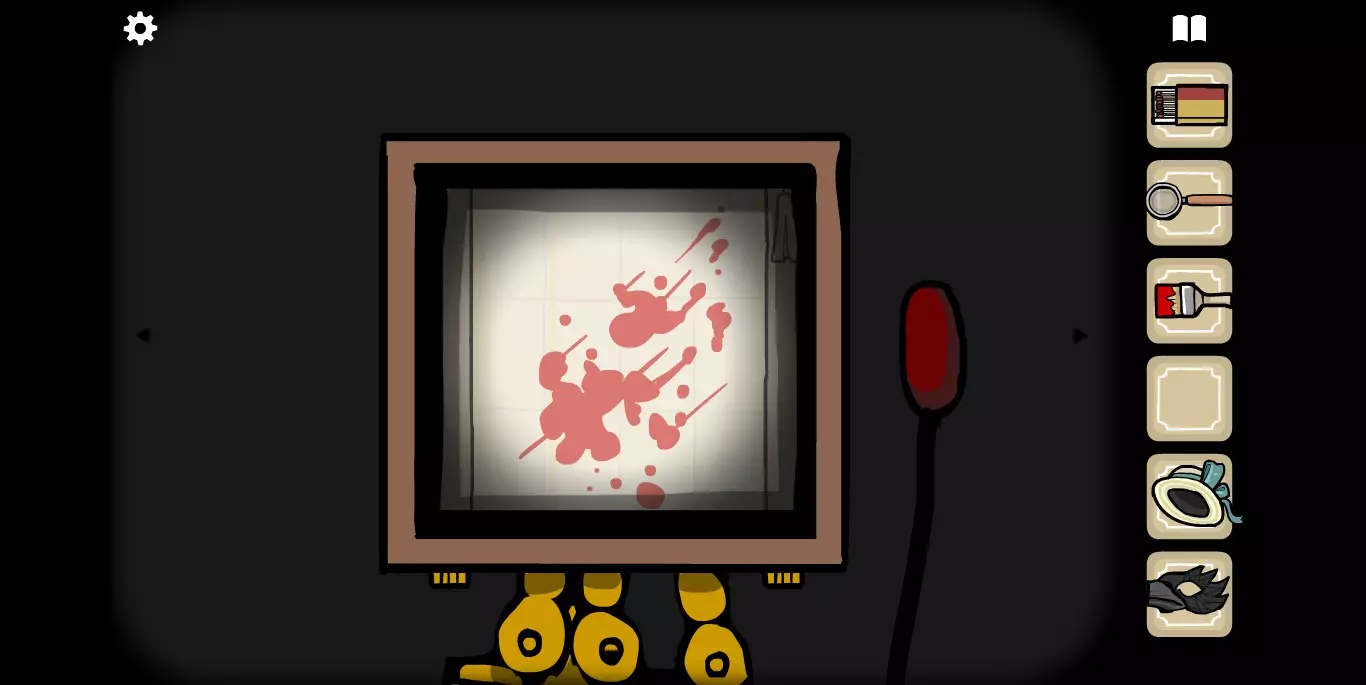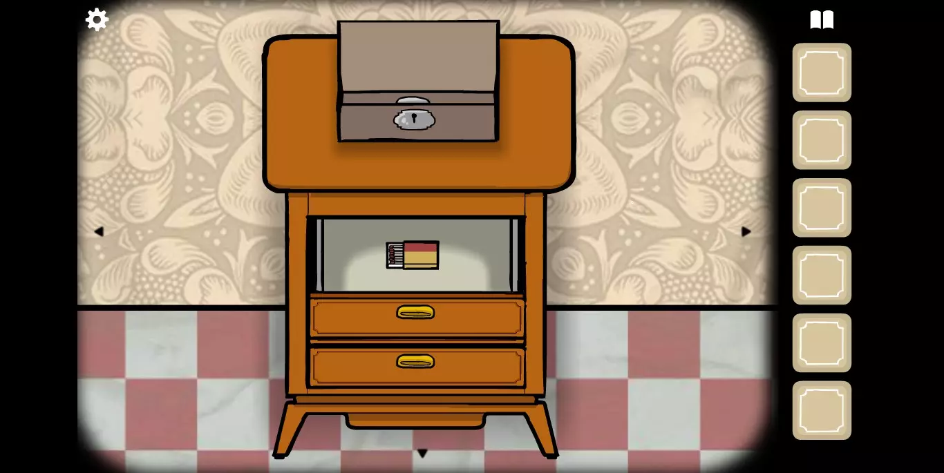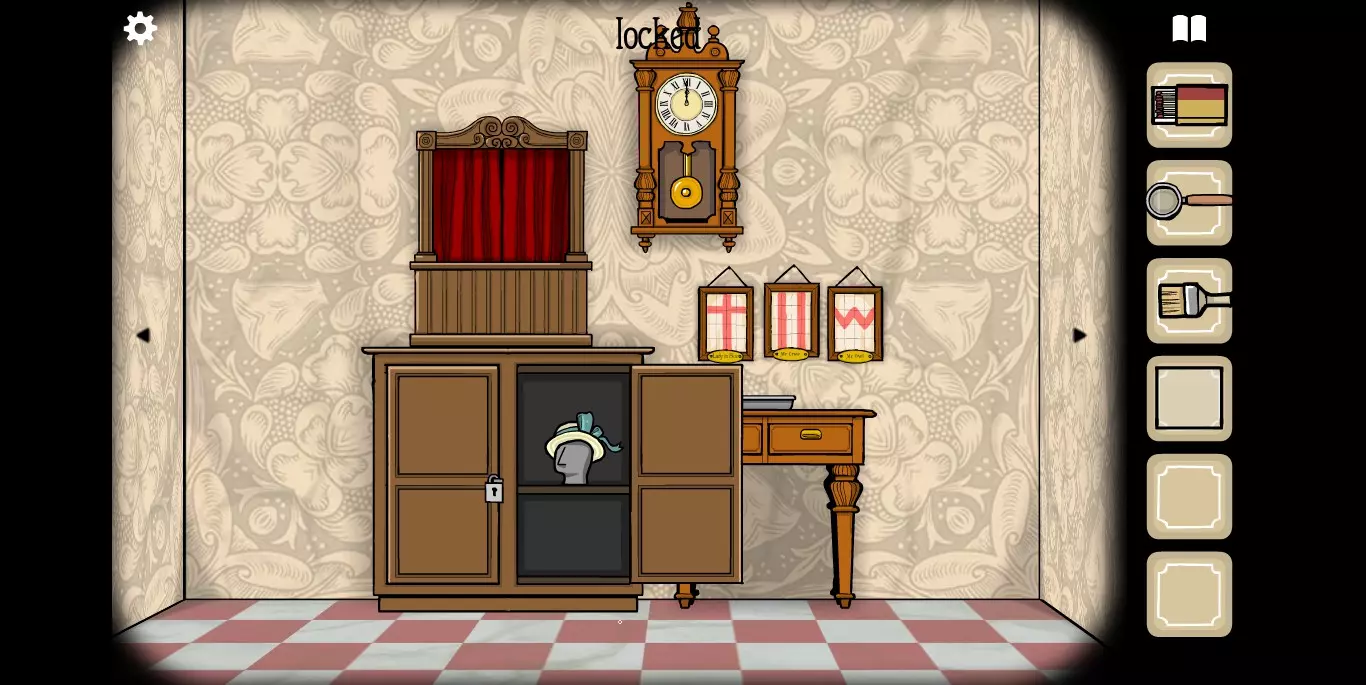 她请你帮忙拍照。环顾屋子后可以发现有三个空相框,应该是需要三张照片。在第二个场景的抽屉里可以分别找到火柴、放大镜和刷子。