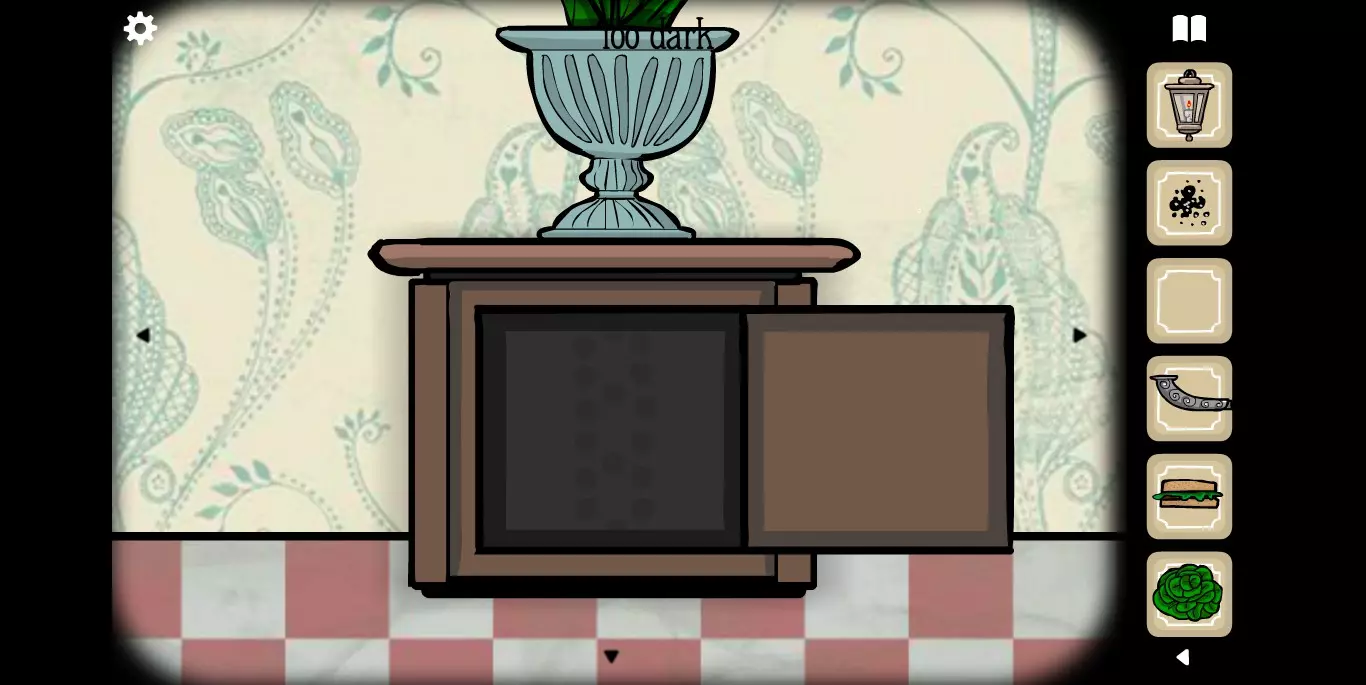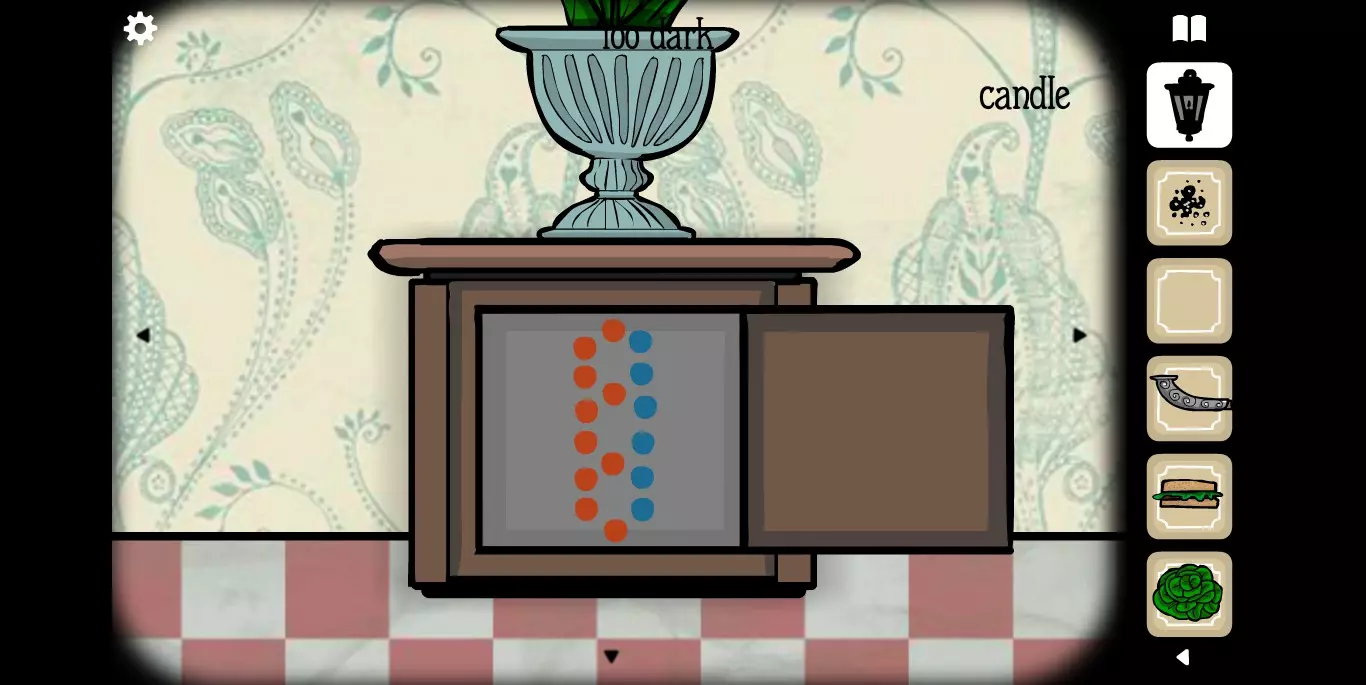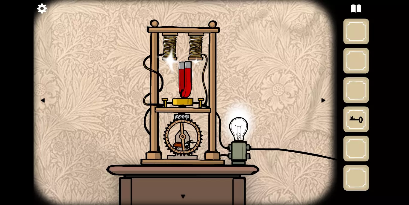 得到一组密码排列顺序。转入第四个场景,桌子上有一个八音盒,将八音盒打开,取出纸条,排列密码。