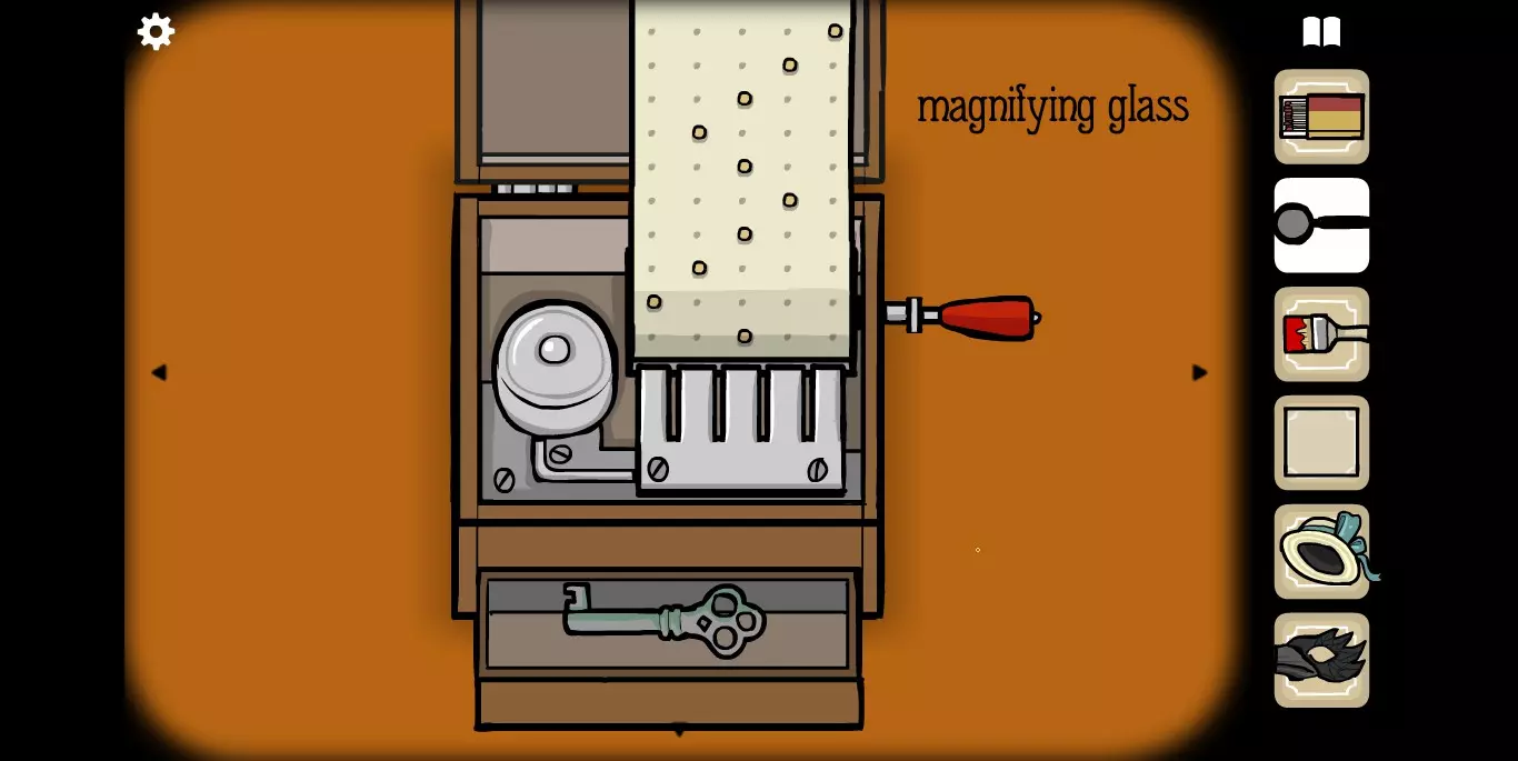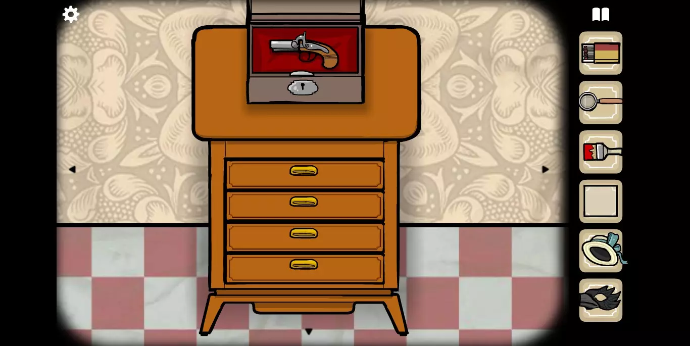 将纸条放回并旋转,八音盒打开后获得钥匙。使用钥匙打开第二个场景的小盒子,得到一把手枪。