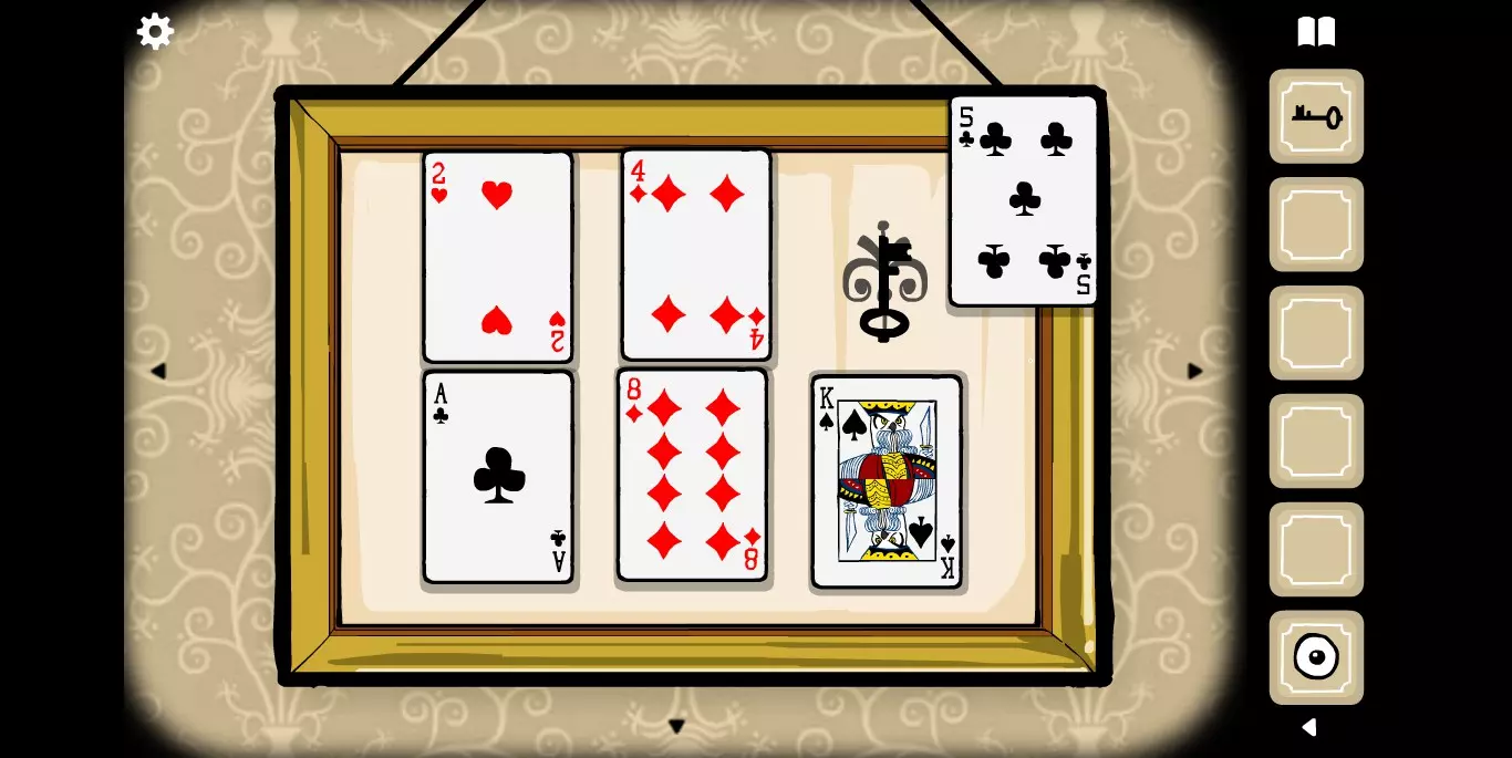 当纸牌按正确顺序摆放后,纸牌5会抖动,移开该纸牌即可获得钥匙。