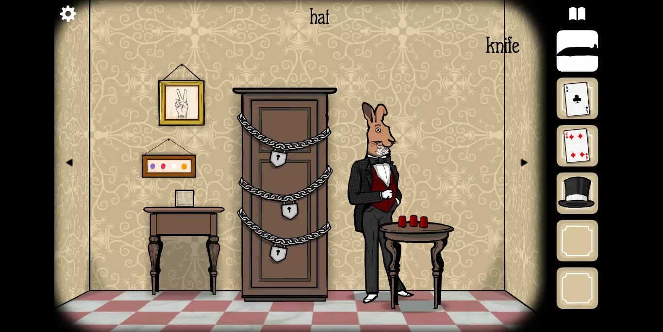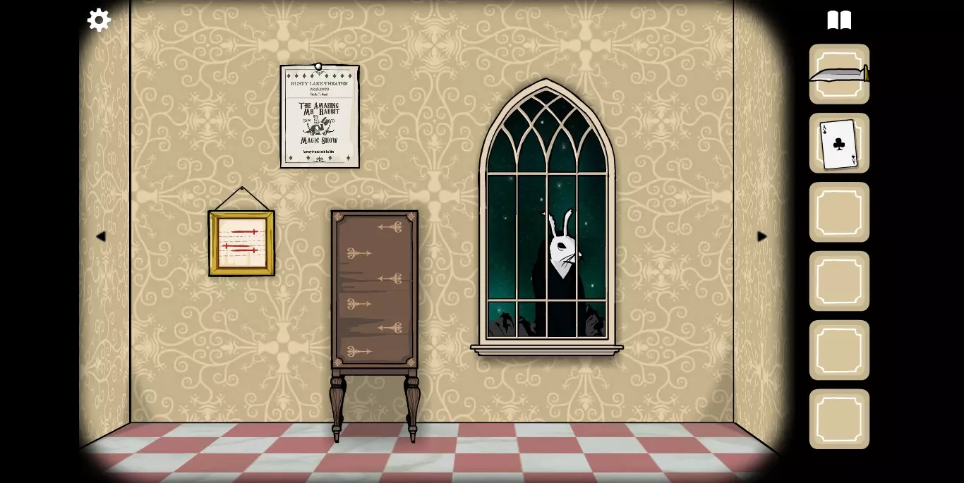 最终兔子嘴里会出现一把钥匙。将收集到的纸牌放入相框【需要按顺序摆放,具体顺序可参考之前其他相框的提示】。