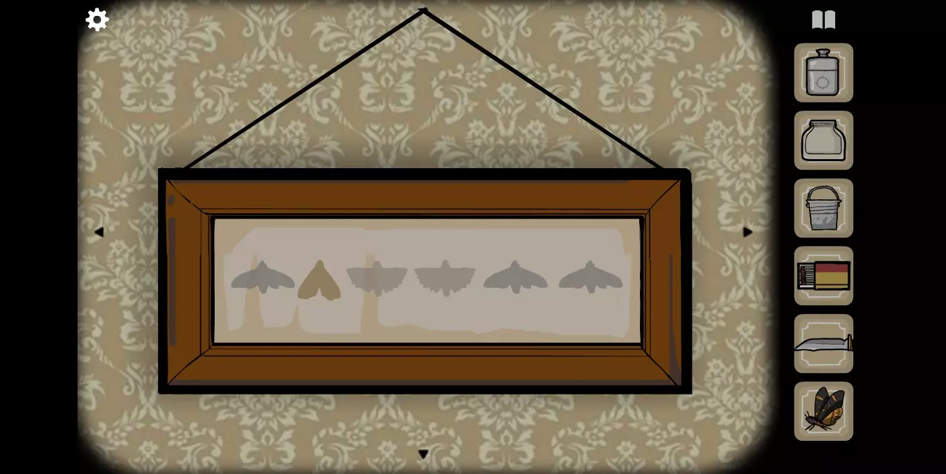 拉开右侧窗帘后静静等待一段时间,会有蝴蝶飞舞或停留。当蝴蝶停下来时,用容器瓶捕捉蝴蝶。将蝴蝶放在标本的空缺位置,并按照图示顺序点击蝴蝶。