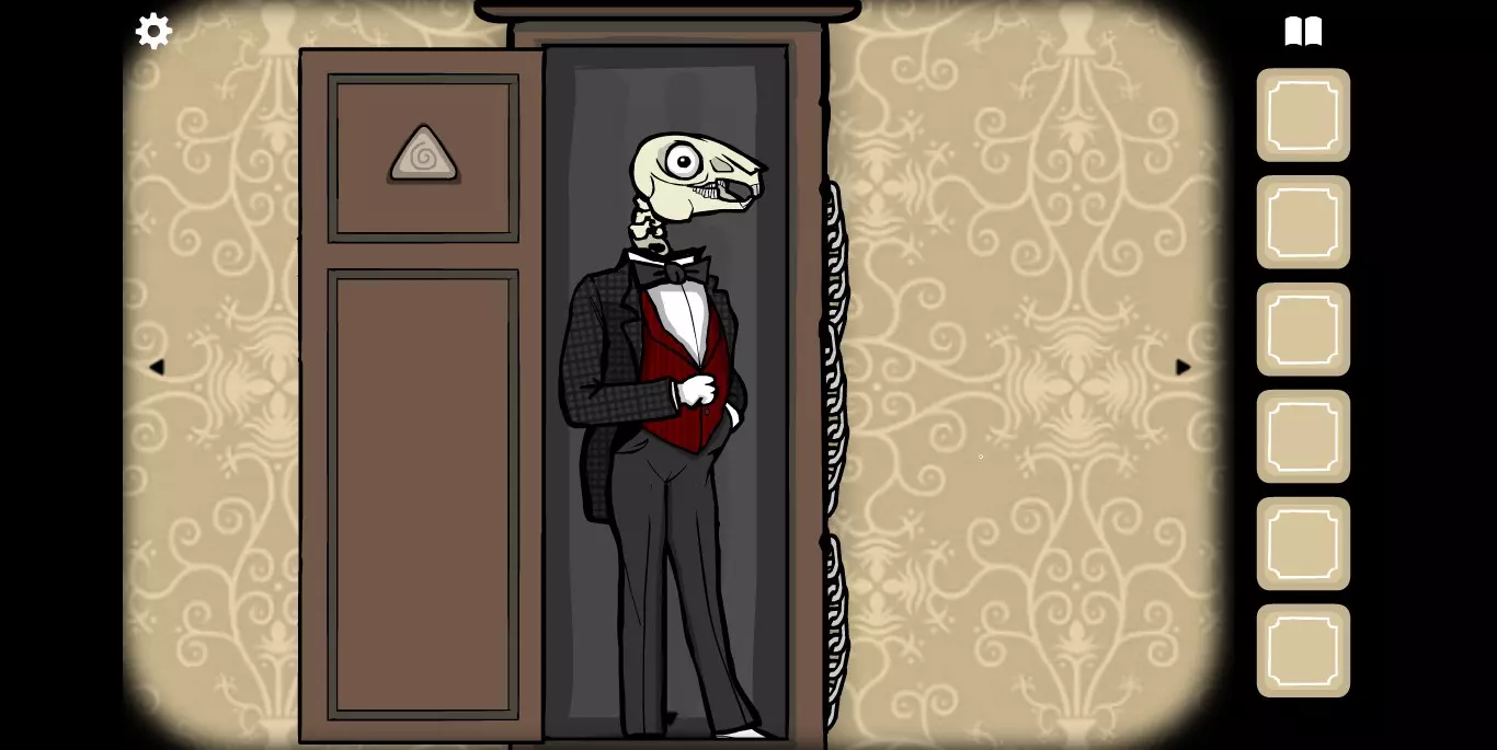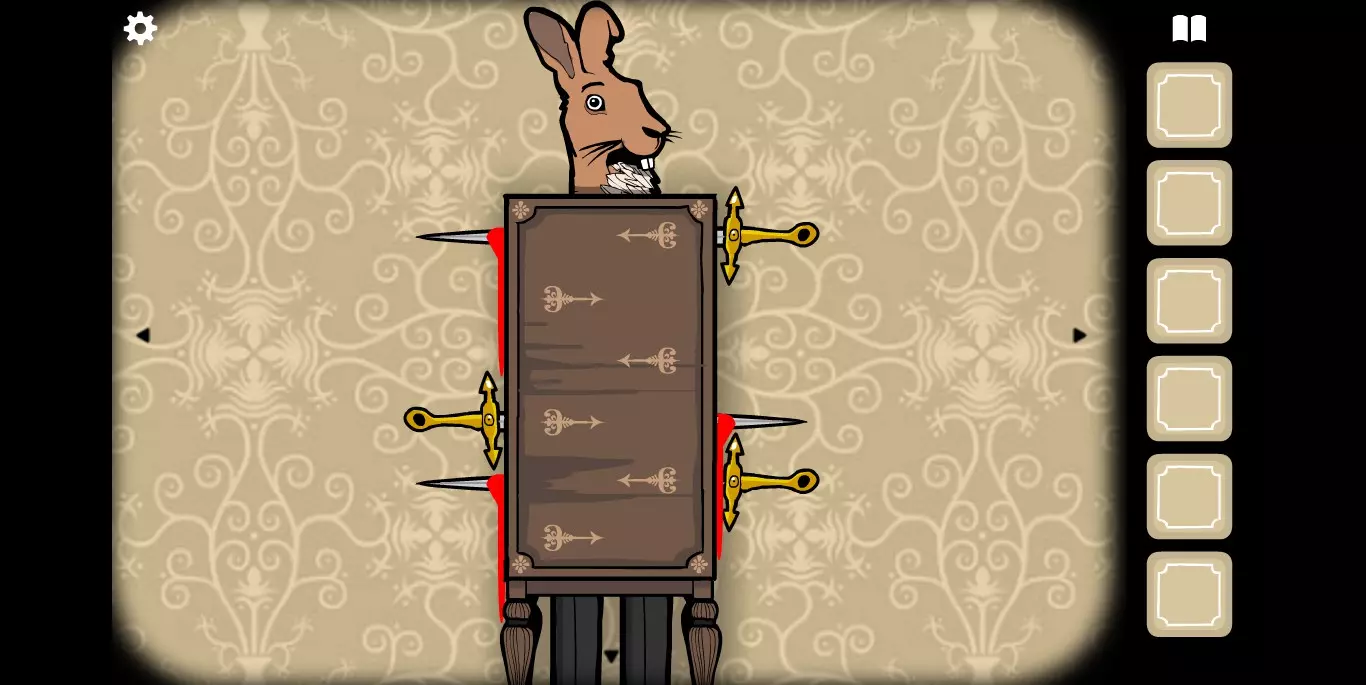 将三角形放入后关上大门,再次打开时,MRRABBIT会变成骷髅(画面略惊悚)
