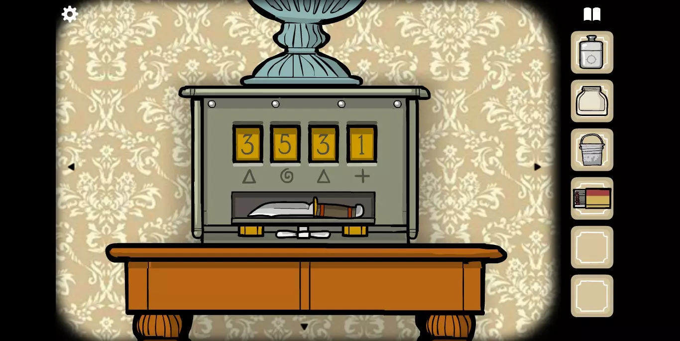 三角是3,旋涡是5,十字是1。接下来输入密码,获得里面的小刀。