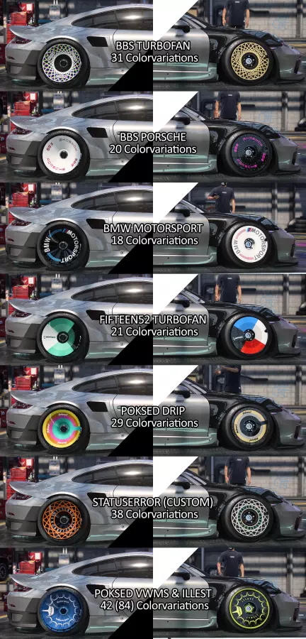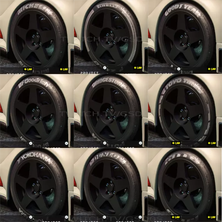 轮胎来自GSN0S。提供不同厂商的轮胎供选择。压缩包内包含更换说明。