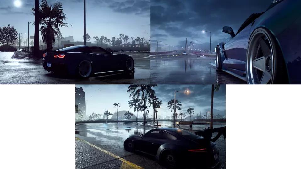 环境 游戏中的环境已进行调整,以在昼夜任何时段营造独特的视觉效果和氛围。云朵已替换为更合适的样式,呈现更舒适的视觉体验。夜间场景的设计灵感来源于《极品飞车2015》。