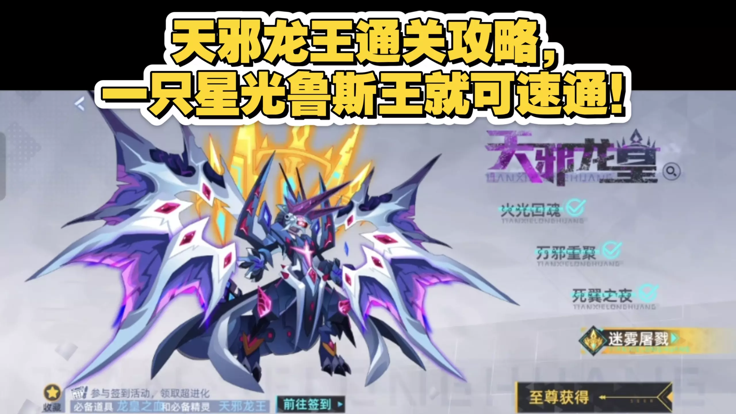 天邪龙王上线u端,增加了保底和扫荡机制,一只星光鲁斯王即可速通!