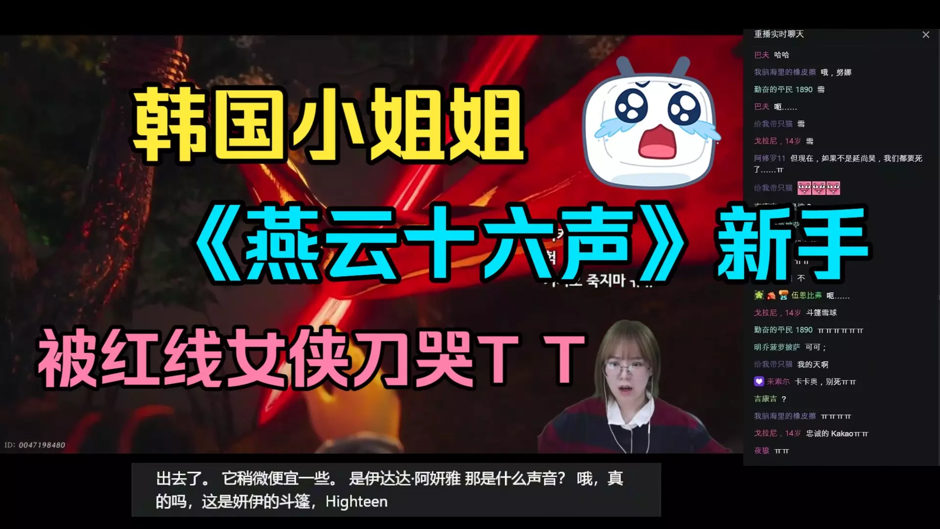 【弹幕】红线女侠刀哭小姐姐T T!韩国21.9万粉丝可爱小姐姐大橘(다주)《燕云十六声》--2.12日直播切片(机翻)
