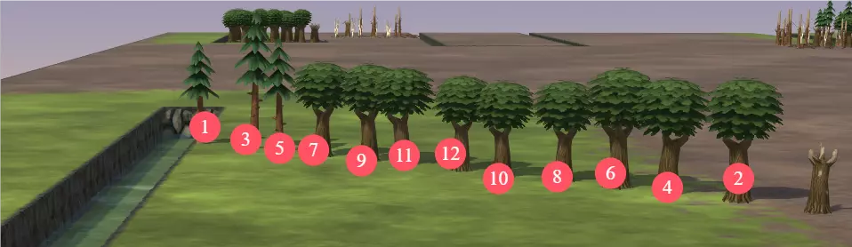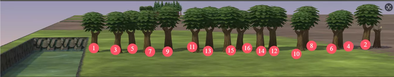 当宽度为两格、深度为两格时,可灌溉6格土地。 当宽度为两格、深度为三格时,周围无法进行种植。