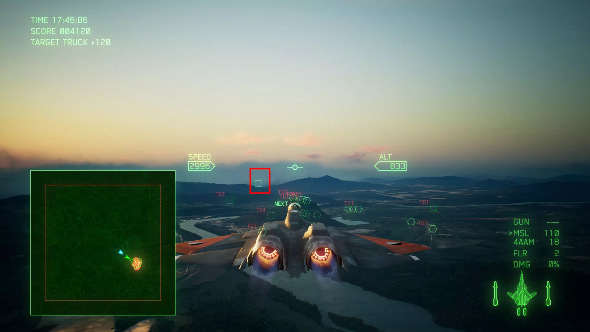 冠名机 第五关:【FANG】 本关共一架冠名机:F-15C 方法:本关须在第一阶段使机体损伤达到60%,达成后冠名机会出现在地图上两拨敌军援军中间位置,出现后会往回撤离,需要尽快击坠。