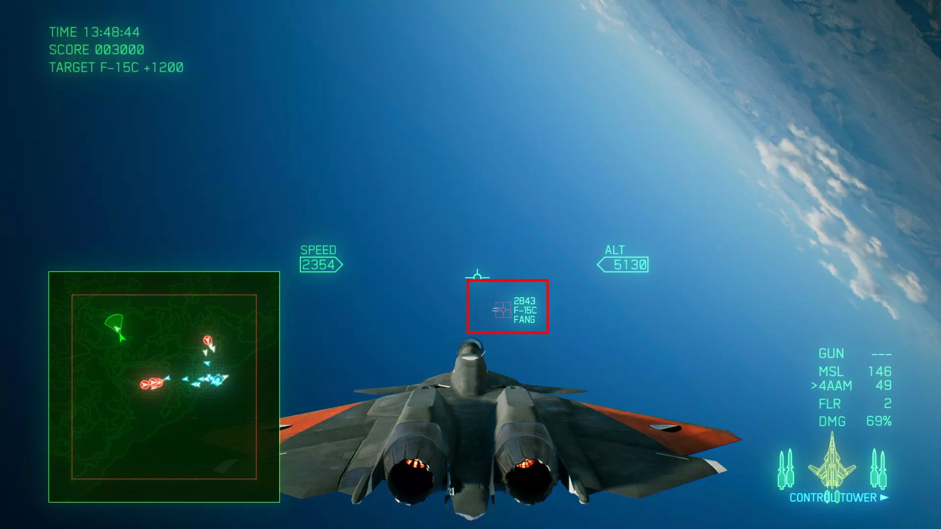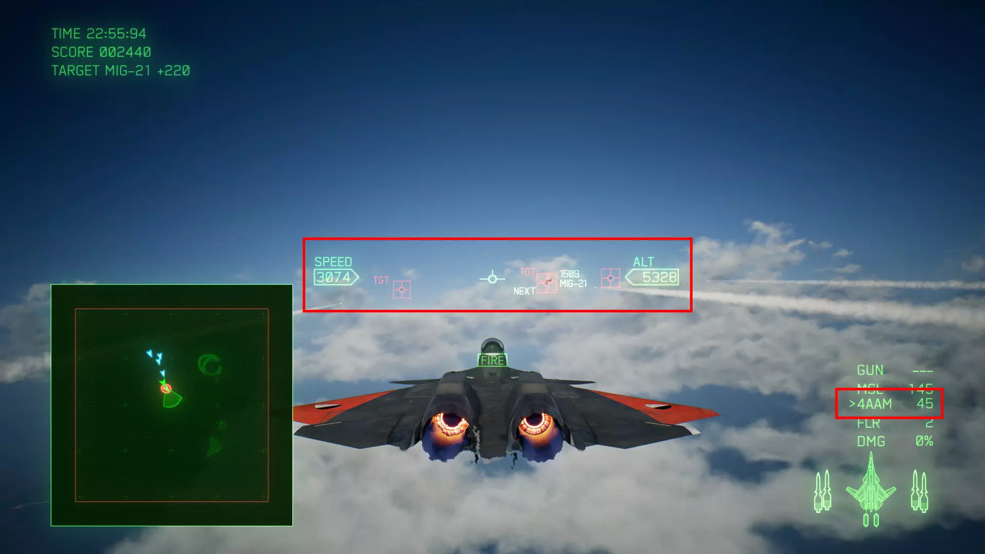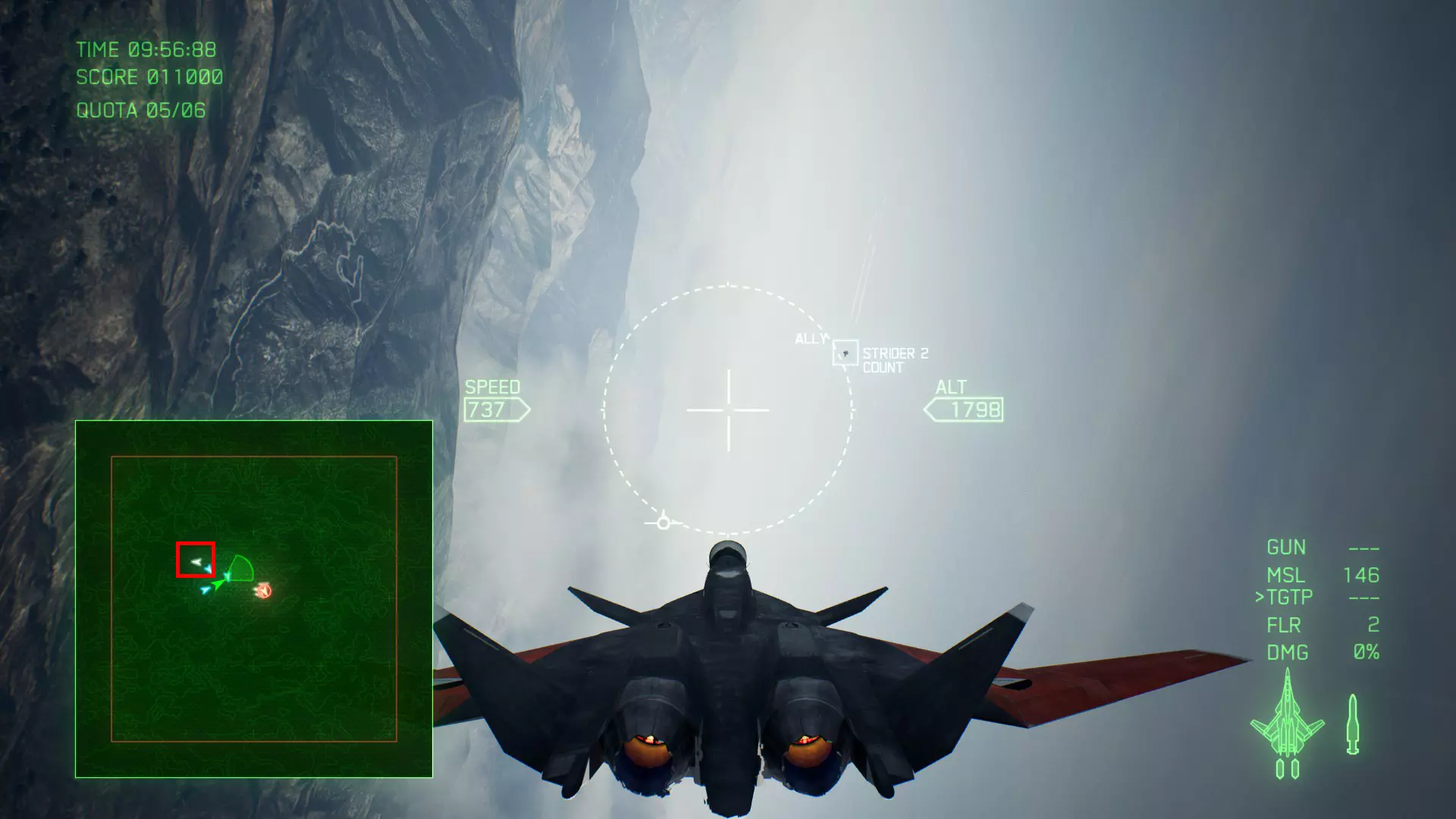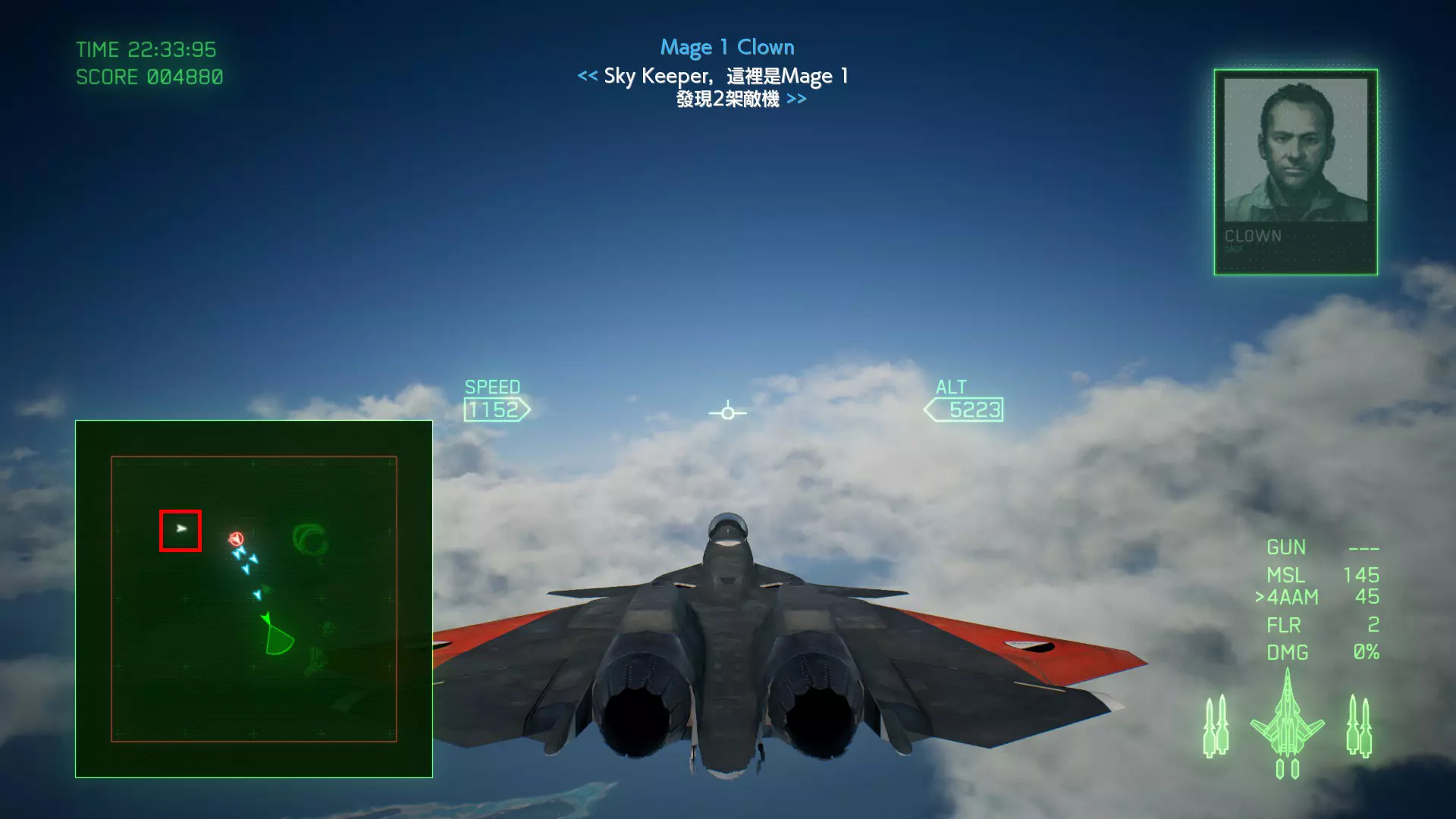 冠名机 第四关:【浪人】 本关共一架冠名机:F-15J 方法:以低于180的高度(ALT)突破敌方雷达网,第二阶段开始后冠名机会出现在地图北方向西飞行。(高度降下来后使用左右平移即可轻松突破)。