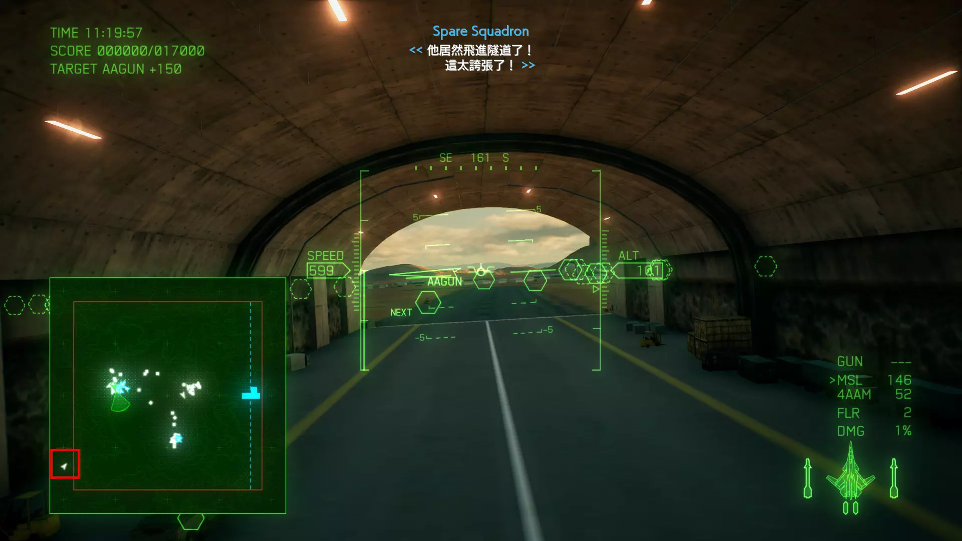 冠名机 第六关:【KITTEN】 本关共一架冠名机:F-14D 方法:从地图西边的防空洞里飞过,进入隧道后冠名机会从地图外西南方(左下)向东北方(右上)飞行。