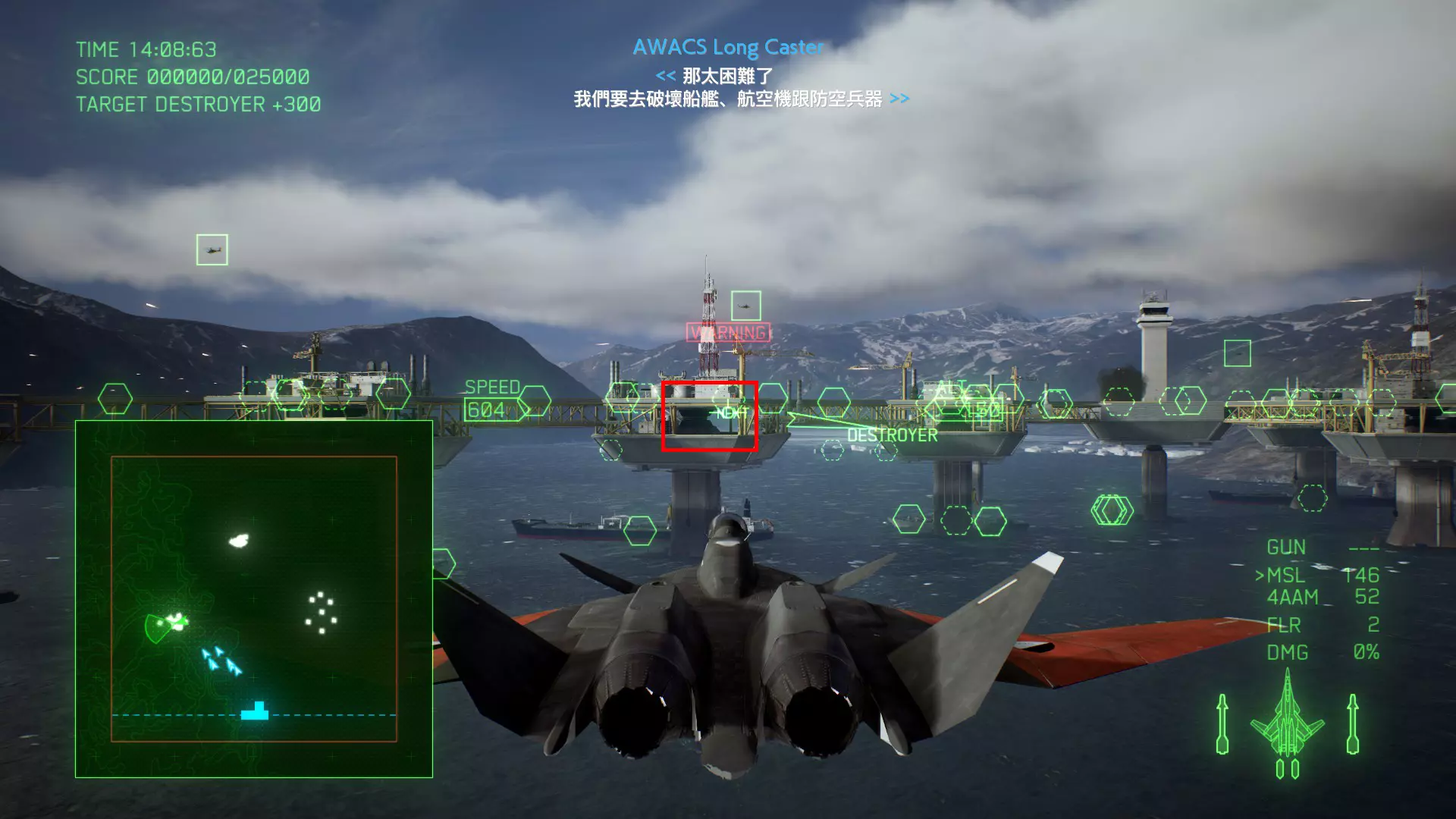 冠名机 第十七关:【MANTIS】 本关共一架冠名机:F-35C 方法:开局后沿着质量投射器轨道飞行一次即可(尽量贴近质量投射器),冠名机会与敌军轰炸机增援出现在地图的东方,需要先识别再击坠。