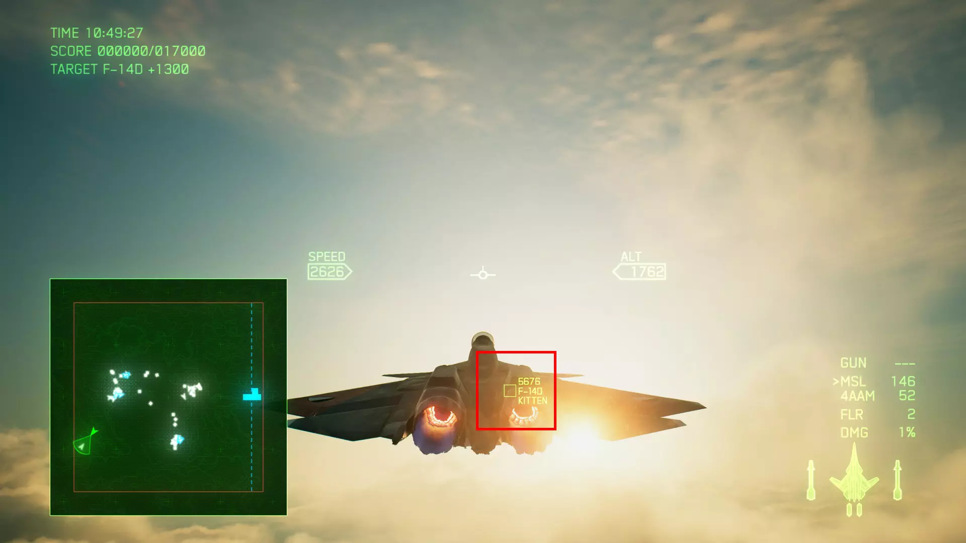 冠名机 第九关:【SPIDER】 本关共一架冠名机:F/A-18F 方法:击破半数除红色目标外的敌方目标(白色目标),击破后冠名机会出现在地图中央向玩家方向飞行,位于云中(建议携带显隐插件)。