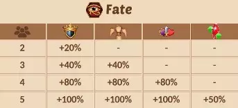 The aura effect is determined by multiplying the fate attributes of each online player in the fellowship: aura effect = (1 + player 1 fate %) × (1 + player 2 fate %) × ...Formula for Fate: fate % = (1 + talent 1 %) × (1 + talent 2 %) × (1 + talent 3 %) × (1 + blessing %) × (1 + medal 1 %) × (1 + medal 2 %) * ... - 1 Where the Fate can be boostedy: 1. Oracle: Blessing 2. Talent Tree (1. at level 531 and 2. at level 801 and 3. at level 1130) 3. During the event: Decorated heroes*During the event: Decorated heroes* Depending on how many stars of recognition you obtained during the event, you will rewarded with a medal of courage after the end of the event. You will only get the highest medal you reached. The medal permanently increases your fate attribute multiplicatively. Guilds At level 10 you can join a guild. Like with the fellowship, you should make sure to join a full and active guild. The higher the guild, the higher the guild benefits. (Benefits via the things that have been levelled in the guild tree and through the guild level). Available as soon as you enter a guild are Expeditions, these are missions separate from your regular map missions that reward you with Guild Coins and Expedition Tokens. The coins are automatically donated into the guild bank (with exception of ones purchased through the shop, from the Battle Pass or the rewards from the arena) the tokens are used to upgrade your personal tree, your wm's or to purchase pickaxes, jewel chets, elixir of life, tools or emblem of valor. Guilds play a major role in terms of your progression in the game too. Guilds have perks for the whole guild, and your own personal perk tree. This will help boost you to pushing further into the game. There are two Trees of Life, the guild tree and the personal tree. Each tree offers upgrades which can be bought with guild coins or expedition tokens. Each tree also has a tree level which is increased by buying upgrades which also yields tree xp. The tree level determines the maximum upgrade level you can obtain for each upgrade. The tree xp gain per upgrade starts at 100 for upgrade level 1 and increases by 10 per level. The tree xp requirement to level-up the tree starts at 1140 xp for level 2 and increases by 15 xp per level until level 10. Level 11 then costs 23 xp more. From level 12 on the increase is 45 xp per level. At certain milestones in the tree level, boss avatars are unlocked. Pickaxes are unlocked at level 50, and are used in the Arcane Crystal (both require a guild level 5+). This is a guild based event, and rewards you with Arcane Crystals based on the damage you dealt with your pickaxes. Each guild has their own crystal and etiquette based on who should be in 1st, 2nd and 3rd place. These crystals are used in Awakening to strengthen your heroes and upgrade their passive abilities. Guild Spirit The guild spirit can be found in the guild hall, second tab on the left side. The spirit level of the guild is determined by the spirit of all guild members together. Spirit is obtained by unlocking and upgrading beasts. All beasts you get from Pharaoh's Chests have an initial Spirit value of 1000, which you can increase by upgrading their rarity level. Spirit level 2 requires 5000 total spirit from all guild members. For each subsequent spirit level the levelup requirement increases by 1 spirit per level. Each spirit level increases one of All Attributes, Raining Gold and Firestone Finder for all guild members multiplicatively by 100%. Leader / Officer / Member Officers can promote, demote and kick any member below officer. Guild leaders and officers are now able to see the previous month's guild donations. Guild leaders and officers can invite and decline recruits. Guild leaders and officers can set guild description and join requirements. Guild leaders and officers can invest guild coins in the guild Tree of Life and upgrade the Arcane Crystal Guild leaders can choose one of the guild banners that have already been unlocked. Guild leaders can promote, demote and kick any member. The guild leader or a nominated officer becomes the treasurer of the guild and can distribute the treasures the guild has obtained in the Chaos Rift competition to the guild members. Guild members who have been inactive for 5 days will be marked with an inactivity symbol (as in Fellowship). Guild members who have been inactive for 10 days will be marked with a grey inactivity symbol Guild members who have been inactive for 30 days will be automatically removed from the guild (Guild leaders will not be removed)Active guild expeditions are now canceled when leaving the Guild. Also in this case the guild coins from completed but unclaimed guild expeditions will be automatically donated to the Guild. The last 50 guild actions are logged in the guild log. The following actions are logged: Promotions and demotions of guild members Joining, leaving and kicking of guild members Guild tree upgrades and level-ups Guild level-ups Arcane crystal breakings and upgrades Rank changes due to inactivity (leader and officer) Guild leader leaving the guild In the Guild Bank, you can donate the guild coins that you have purchased in or received from the Arena of Kings or the Battle Pass to your guild. Guild coins earned from expeditions will be automatically donated. The monthly donations from the guild members for the current month can also be seen there. Guild leaders and officers can see members' donations for the previous month. The manual guild donations from the guild members are documented in the guild bank log. In the treasury, the guild's treasurers can distribute the treasures the guild has obtained in the Chaos Rift competition to the guild members. The damage that a player does in the chaos rift is tied to that player, if he leaves the guild (or he gets kicked) he will take the damage with him. Inactive Guild Leader If the guild leader is inactive for longer than 5 days and if there are no active officers in t