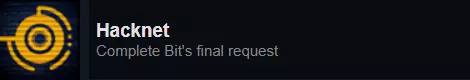 在Naix入侵你并删除了你的"x-server.sys"文件后 "cd /log" "ls" 找到Naix使用的IP "connect [你找到的IP]" "probe" "SSHack 22" "PortHack" "cd /sys" "scp x-server.sys" "dc" "reboot" 此时,你需要向Naix复仇,而不是继续熵任务。 连接到"Proxy_Node-x22"(与上述IP相同) "Scan" 入侵"Naix Root Gateway" 进入"/bin" 获取"WebServerWorm.exe" 进入"/sys"并删除"x-server.sys" 你应该会收到来自Naix的邮件"gg wp"。 此时,你需要执行他的任务,直到获得对"/el Message Board"的访问权限。在“/el 留言板”中,你需要完成所有任务,然后: 连接到“COME AT ME /EL's Secure SecuLock Drive” 登录:用户名=admin;密码=ithoughtyouweremakingtea 进入/home并删除“DeleteMe.txt” 删除文件后应该会解锁成就。