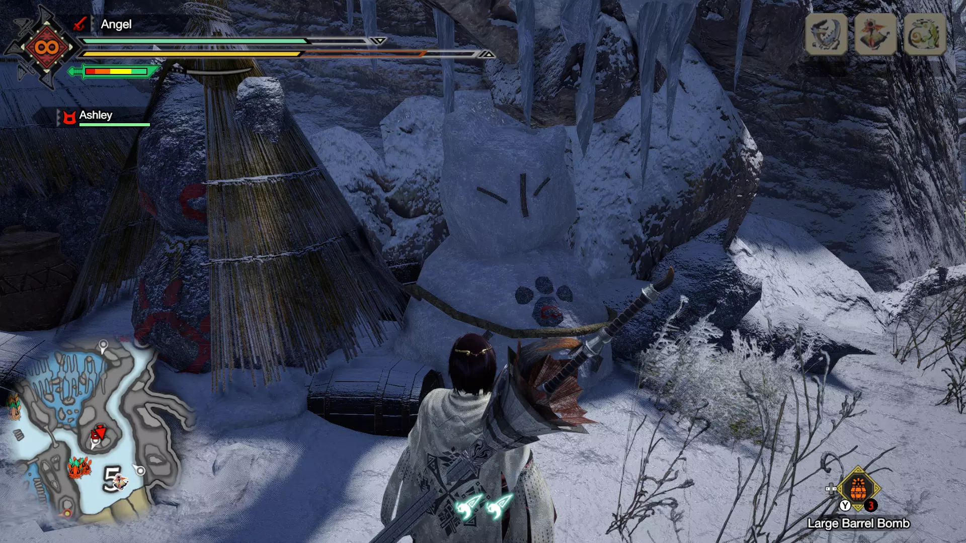 唤醒方法A:你最多可以放置两枚大桶爆弹。不过,你可以投掷第三枚大桶爆弹来引爆已放置的两枚,造成固定伤害(2×150)+(1×2×150)=600点(固定),四人满狩猎队伍最多可造成1500点固定伤害。 2枚已放置的大桶爆弹,每枚造成150点固定伤害 加上 1枚投掷的大桶爆弹,对睡眠状态的怪物首次命中时造成150点固定伤害×2 唤醒方法B:如果可以,使用爆裂蟾蜍代替大桶爆弹来引爆/对睡眠状态的怪物造成首次伤害,因为爆裂蟾蜍能造成更高伤害。 唤醒方法C:让队伍中武器伤害最高的猎人进行首次攻击,理想情况下在此过程中引爆爆炸。它们必须造成超过150点固定伤害,这相当于一个大桶爆弹或爆裂蟾蜍(若可用)造成的伤害。 多人游戏中的常见错误:在以往的游戏中,将所有炸弹放置在沉睡怪物的头部更为合理,这通常会导致后续的眩晕。然而,如果炸弹的放置实际上阻碍了你的武器攻击,那就毫无意义了。你不必将炸弹都放置在沉睡怪物的头部周围,因为炸弹会造成固定伤害,无论放置在何处。它们是否同时引爆也无关紧要。你甚至可以将它们放置在怪物的另一端,并在初始伤害后通过其他方式(例如手里剑)引爆。利用炸弹破坏怪物部位能获得最佳效果。 老手提示:在队友的协助下,定时炸弹或其他炸弹可触发特别强力的反击,进而造成极高的起身伤害。 随时暂停:进行单人游戏时,你几乎可以随时暂停游戏。当你边等外卖边玩游戏时,会很感激这个功能。或许今天会有美味的披萨呢?