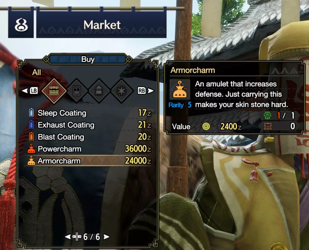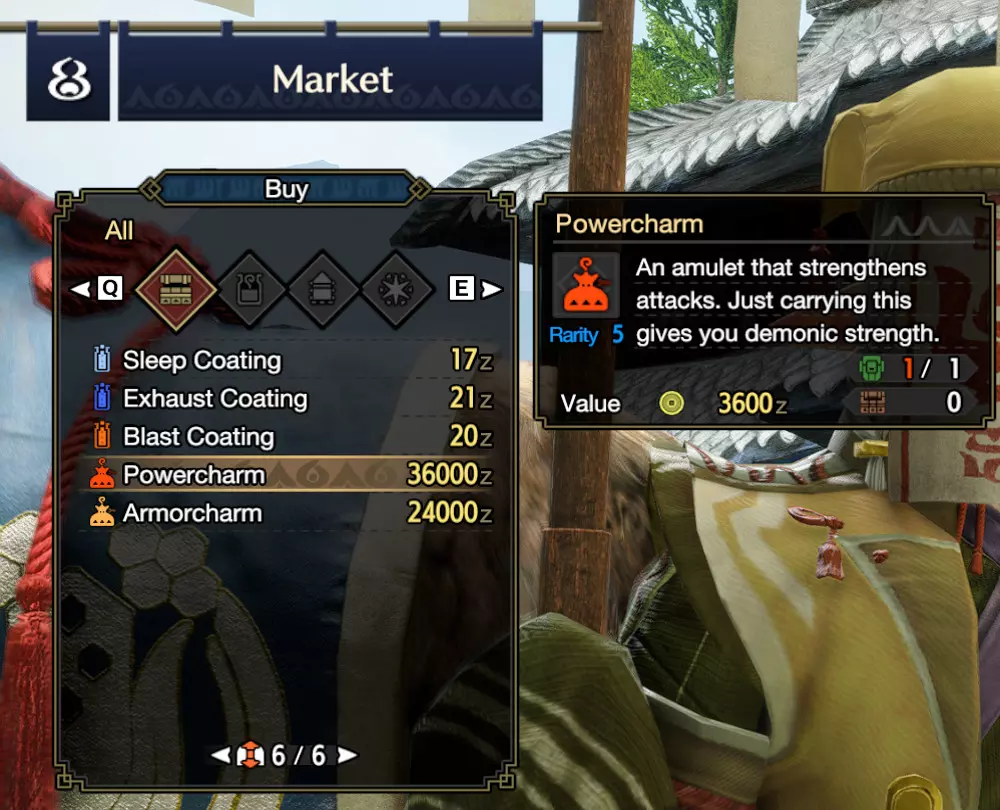 它们提供攻击和防御的被动加成,是每个猎人都会一直保存在背包中的标准物品,以获取属性加成。之后,如果你还没从制作列表中注意到的话,可以使用饰品来制作更好的饰品,这些更好的饰品能提供更多的攻击和防御被动加成。