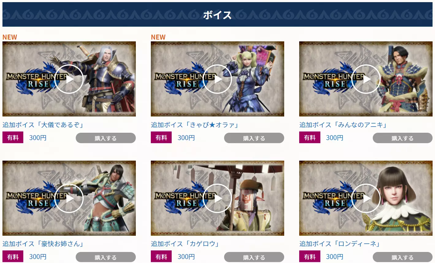 关于日语语音DLC的概述,请查看卡普空《怪物猎人:崛起》商店页面的日文版本。