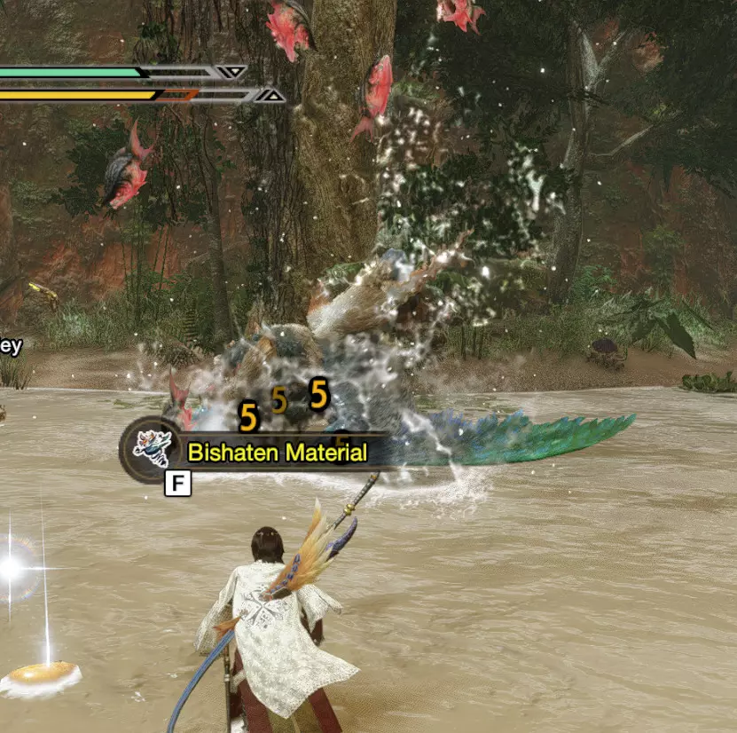 在《怪物猎人崛起:曙光》中还有更多秘密等待你发现~你知道吗,在水没林狩猎时获得的简易诱饵肉其实是用来对付那些类似食人鱼的鱼类的?当它们跃向诱饵时,也会咬到附近的怪物哦~