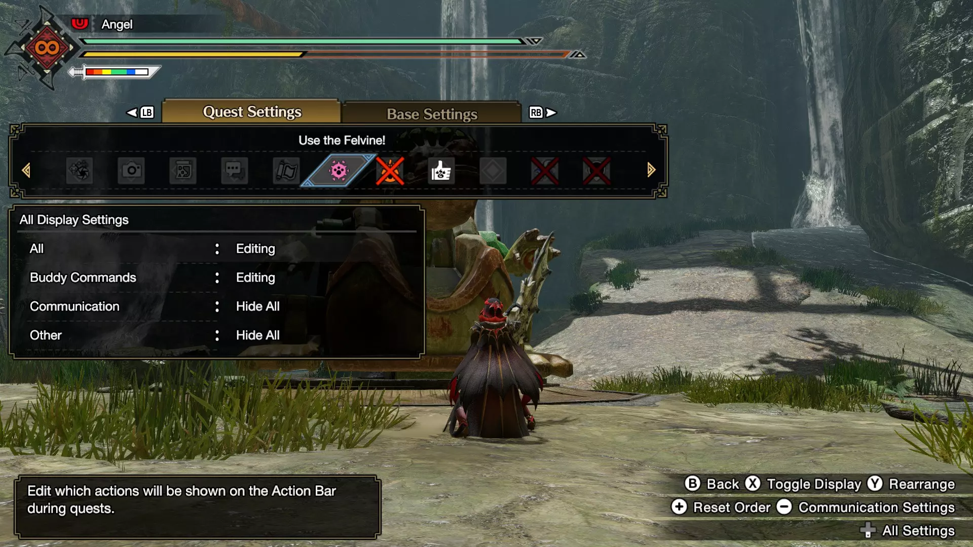 我自己已经关闭了《怪物猎人崛起:曙光》扩展包新增的HUD中的“切换技能信息”部分,因为这些信息太让我分心了,而且我知道哪些技能属于哪个套装。我只需要看到当前激活的是哪个卷轴。过去我隐藏了“玩家信息”和“动作栏”,因为不常使用。任何不必要的元素都只会带来额外的干扰。现在我会用“玩家信息”来追踪角色身上的 buff,动作栏则能帮我追踪当前激活的技能组,同时也让我能方便清晰地使用伙伴的特殊指令。我也建议大家根据自己的喜好调整HUD!