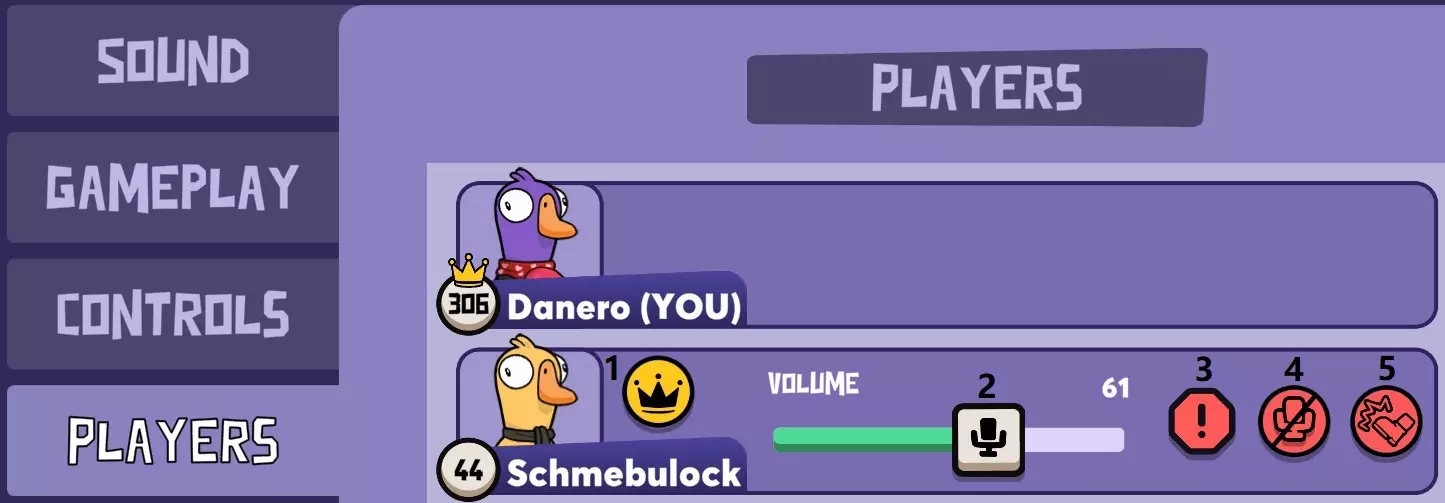 你可以随时按F键(或在移动设备上点击你的小鸟)来发出放屁声。你还可以从Peck and Claw或Dust Shop获取动画放屁效果,并在自定义菜单中装备它们。如果放屁声让你感到困扰,可以在设置菜单中启用【无声但致命的放屁】。 玩家菜单中的这些按钮是什么?