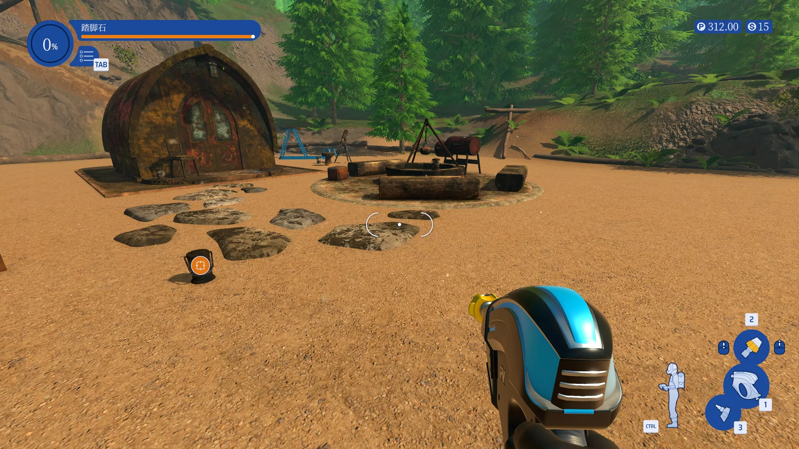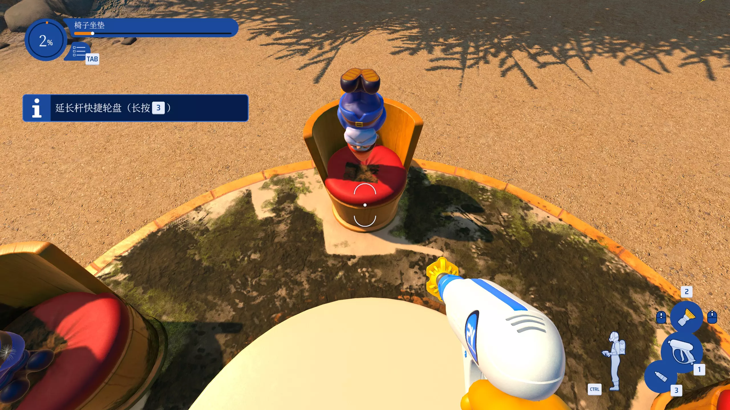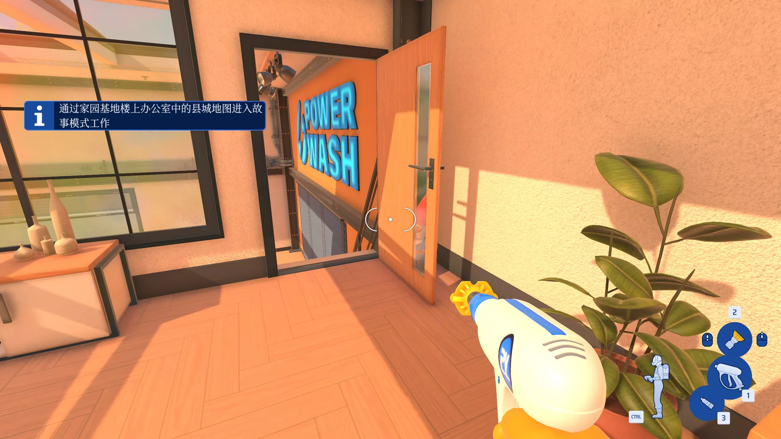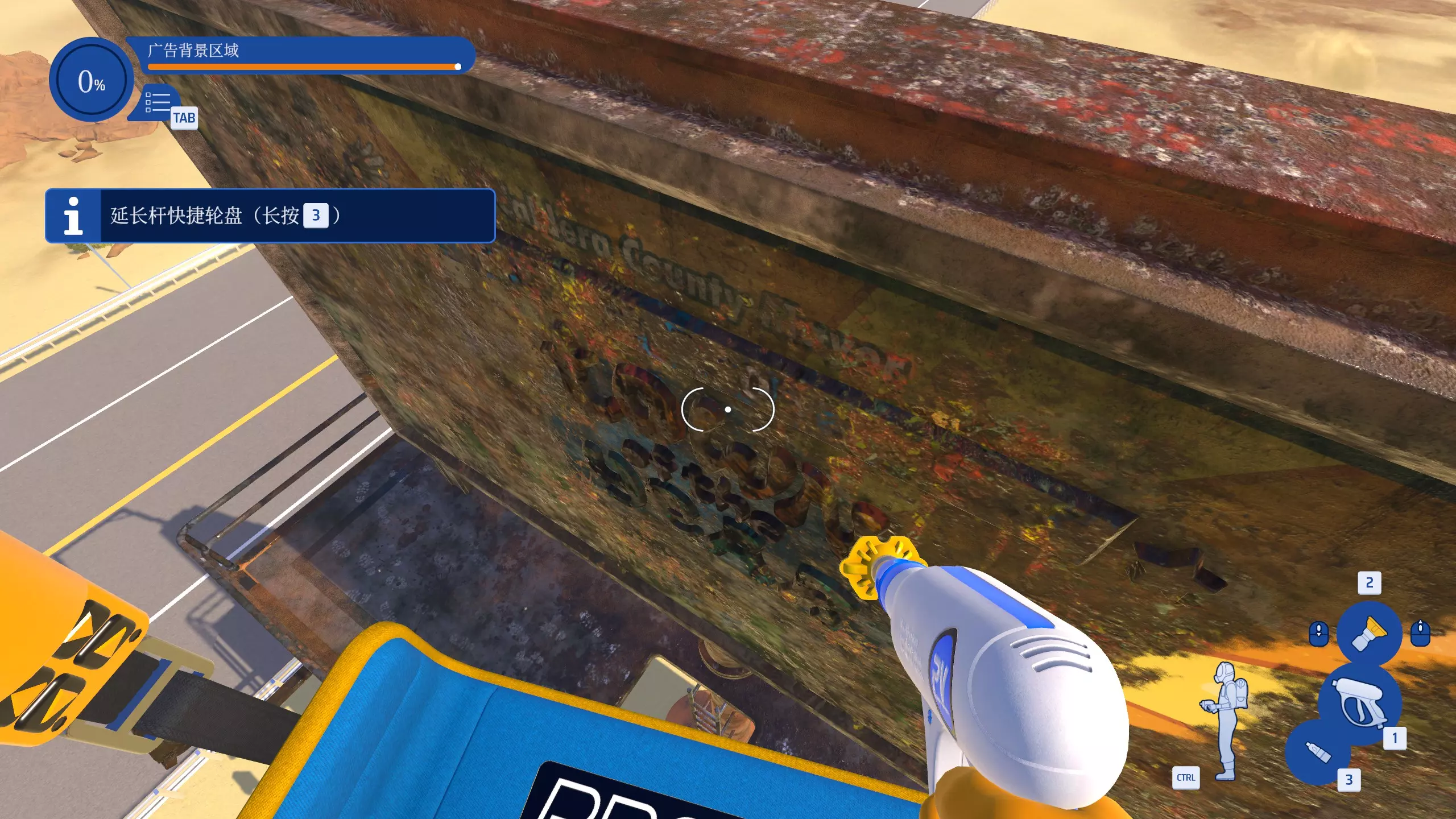 当视角未对准选中物品时,会出现一个图标,指示选中目标未清洗干净。