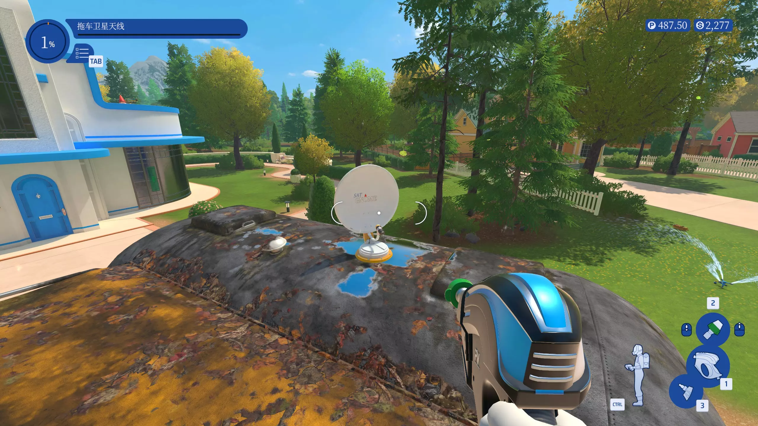 灵活应变 仅使用可调节喷嘴完成任意工作 每个清洗器(除了表面清洗器)都可以买到对应的可调节喷嘴,仅使用可调节喷嘴完成工作即可。 实际上也是非常简单的,因为可调节喷嘴完全可以代替普通喷嘴使用,使用滚轮可以调节水压和喷射范围。 最快只要完成第一个清洗任务-搬家车后使用赚到的钱购买可调节喷嘴,然后使用喷嘴完成一个工作即可(重玩搬家车也可以,但是清洗家具不算)。