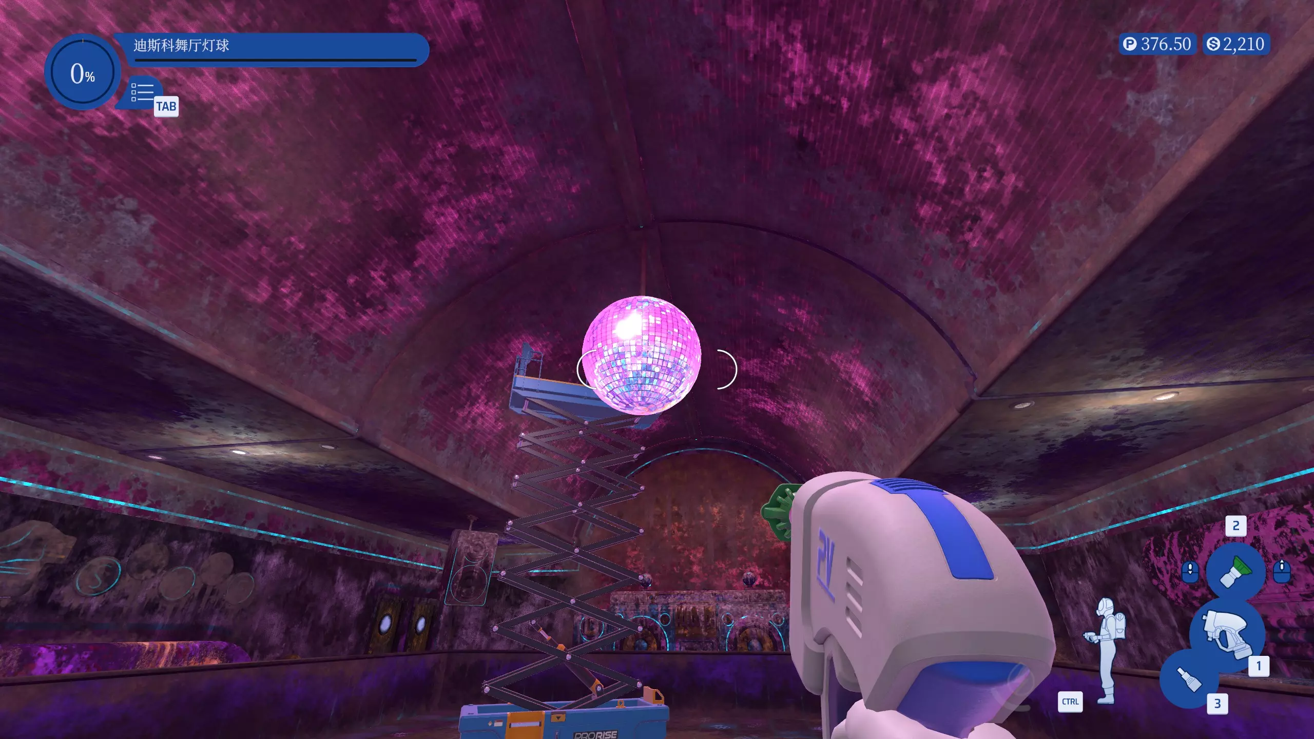 光彩照人 在迪斯科轮滑馆工作时,优先清洗迪斯科舞厅灯球。 工作中,先将天花板上悬挂的灯球清洗干净,不包括灯球杆。
