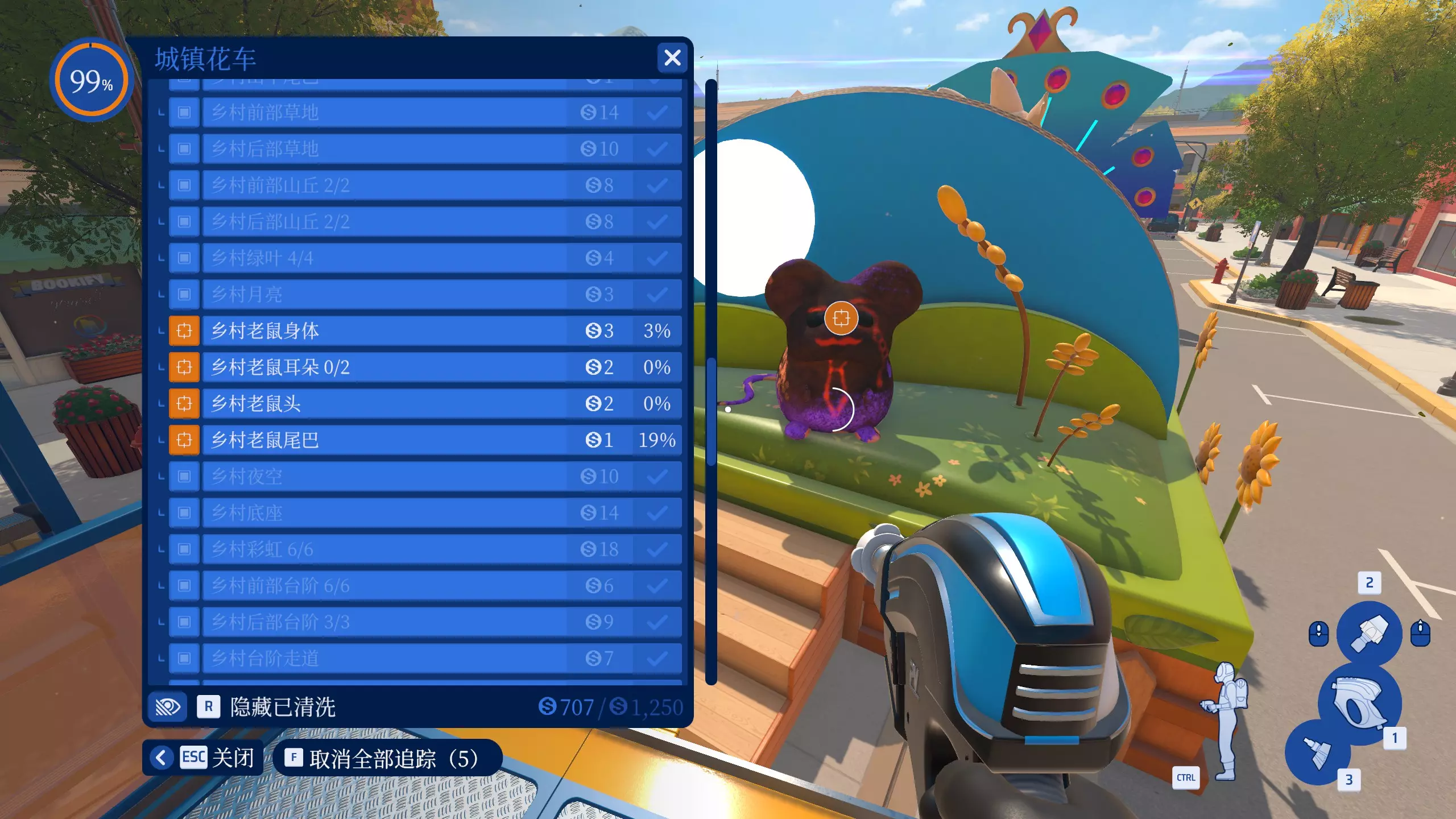 在城镇花车工作中,最后清洗老鼠。先将花车工作里的其他所有部位都清洗干净后,再去清洗老鼠即可。老鼠就在最后一个乡村主题花车的背后。
