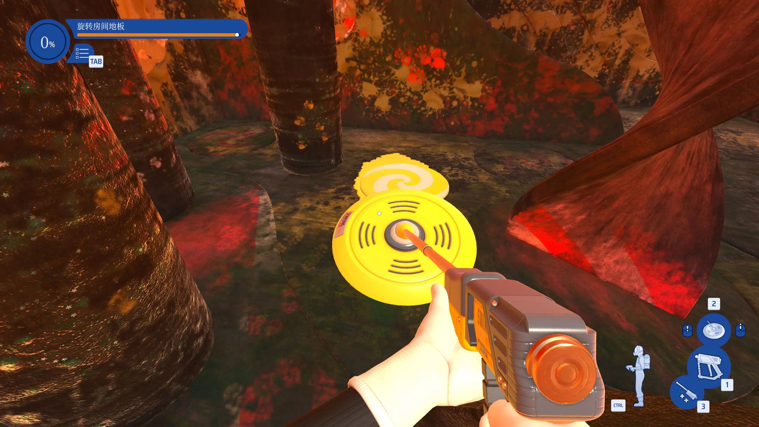 转盘高手 在游乐屋工作时,使用表面清洁器清洗旋转地板转盘。 进入游乐屋一楼,即可看到设有各种旋转物品的房间,只需使用表面清洁器将地上其中一个旋转房间的地板图形清洗干净即可。
