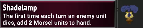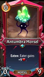 Overview: Those beautiful gems from underground have a non-human cost in this world, and fortunately it’s from your proud little Morsel buddies, who are happy to confer your team with stats & buffs while building up the Ember & Size of your train. MT1’s swingiest clan is back, now heavily benefiting from both the Deployment phase, and a 2-size increase from the Heaven’s Light boss artifact. Umbra functions by utilizing 0-cost Morsel units that will help boost the stats of your allies, potentially Bop the enemies, and/or take a hit for you! Their units get extra benefit from the Morsels, even though their Eaten effects apply to units from any clan. Umbra has a variety of support effects as well, helping support your run with Capacity increases and Ember-generating tricks. Like Underlegion, this clan can often dominate the early stages of the game, while needing some TLC to stay as powerful late in a run. Offensive strategies: Umbra’s offensive builds are mixed through a pretty wide variety of effects. Attack boosts come freely with Morsels, with other effects like Rage and even Multistrike found in their Spell cards. Their unique tome can grant Trample to a unit, though this effect is more common in MT2 than it was in MT1. Umbra has a pretty decent variety of offensive spells, though they tend to mostly either be very weak or very strong, without much middle ground! Multiple units & a Champion grow stronger with every Morsel eaten, and one Uncommon unit also blasts all enemies with damage every time it eats. Two of their Morsel units, Magma & Excavator also have some Attack on them, which can help pick off backline enemies and double-tap their Reanimate stacks away. Finally, the Exiled Champion Primordium is extremely unique in the fact that it has the ability to confer its own stats and/or buffs to allies, giving the player opportunities to build up offense (and defense) to units of any clan. Defensive strategies: Umbra has a pretty strong defensive presence through its variety of stat-boosting effects, and its frequent access to Damage Shield and Lifesteal effects. Many of Umbra’s own units tend to have higher Health stats than average, and these will be frequently boosted by Morsel units. The escalation in enemy stats over MT1 has made both of these effects more useful; damage shields in particular can eat even the nastiest hits in the game to help avoid otherwise scary hits from Corruption, Melee Weakness, and enemy Sweepers. The plentiful nature of Morsels gives a lot of potential to soak up damage at times as well, particularly Antumbra & Jeweler Morsels which have 9 & 6 Health to block even multiple hits at times. Finally, the Exiled Champion Primordium is extremely unique in the fact that it has the ability to confer its own stats and/or buffs to allies, giving the player opportunities to build up defense (and offense) to units of any clan. Stat-influencing strategies: Though they’re almost exclusively limited to Morsels, these Morsels are everywhere in this clan’s deck & artifacts, and they all confer stat boosts to the unit that eats them. Some Umbra units even gain bonus stats on top of the existing boost the Morsel would have given! The introduction of their unique Equipment (R) Glutton’s Maw has also given other units the ability to sacrifice other units for a big stat boost. As a reminder, stat boosts carry over when a unit is defeated, so Endless can be pretty potent when playing with this clan! Support strategies: Multiple Spells, Rooms, and even Artifacts in this clan help with Ember generation and increasing the Capacity of the floors of your train. Umbra has multiple spells that can gain you Ember on top of damage as well, giving some options for playing a bigger hand of cards. Though Card Draw effects aren’t common here, an Artifact can do so, and their unique spell (R) Retch can re-draw consumed Morsels. Speaking of Morsels, these have the ability to provide both Damage Shields & Lifesteal effects to other units, and one path of the Exiled Champion Primordium can even pass on any buffs to an ally repeatedly! Sweep/Backliner Strategies: Umbra can do a bit of mining in the back of the train, but mostly they tend to chip away at the frontline. This is Umbra’s biggest weakness, as they lack any traditional Sweep units, some of their strongest offensive spells target enemies randomly, and the few remaining Spells that target specific enemies are of very-low potency. Their most potent/traditional Sweep effect comes from (U) Shadoweater, who blasts enemies with damage with every Morsel/Gorge… quite strong, but limited to only that unit, and difficult to trigger before battle since Quick cannot influence that. The Trample effects found on Penumbra or their Tome spell can significantly help to clear out exposed backliners, but you may need to seek help from your other clan for dealing with these problems. Cards Changed from Monster Train 1 Note: Monster Train 2 has a significant escalation in enemy Stats, so the majority of MT1 cards have had adjustments to increase their potency. This section only focuses on cards that have gained new functionality, new restrictions, or changed their properties entirely.